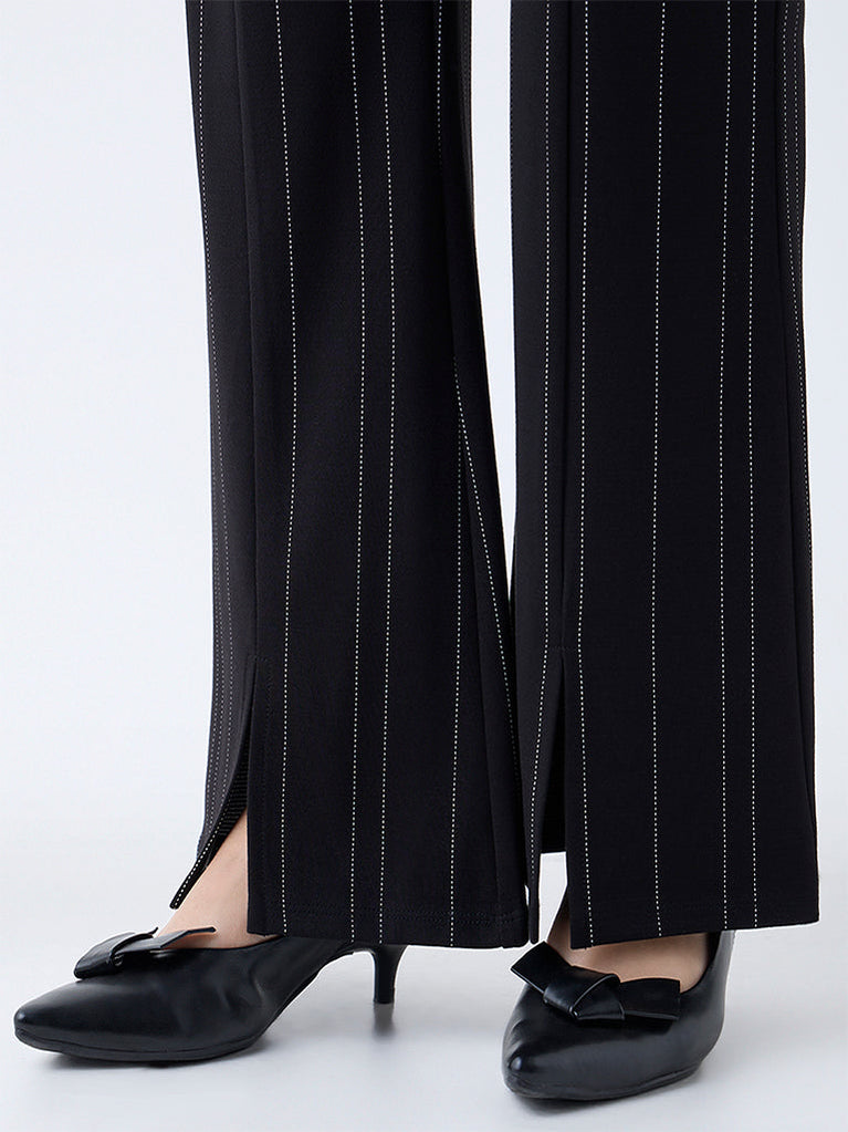Gia Black Pinstriped High-Rise Bootcut Trousers