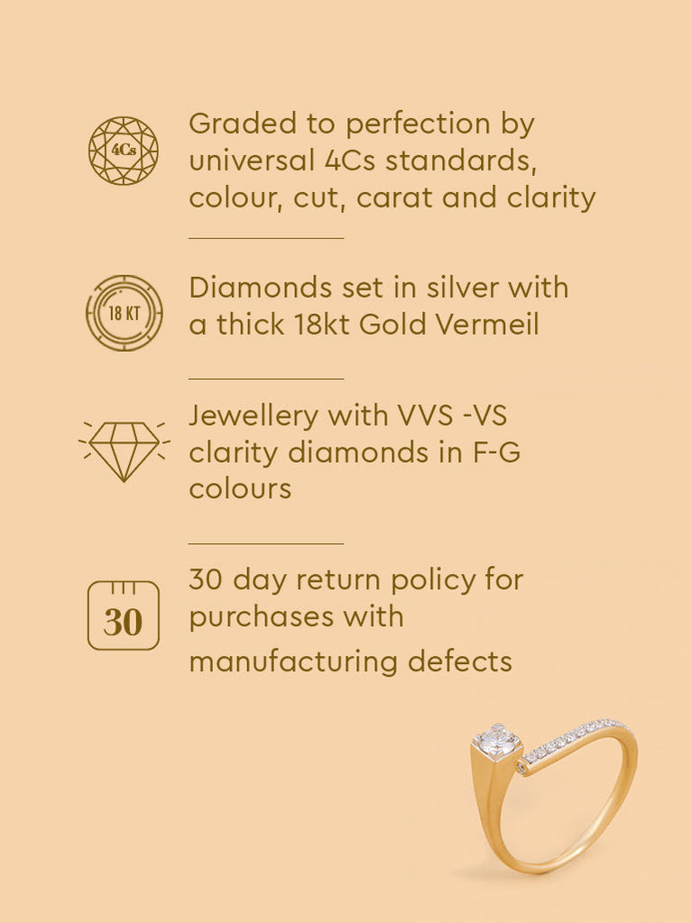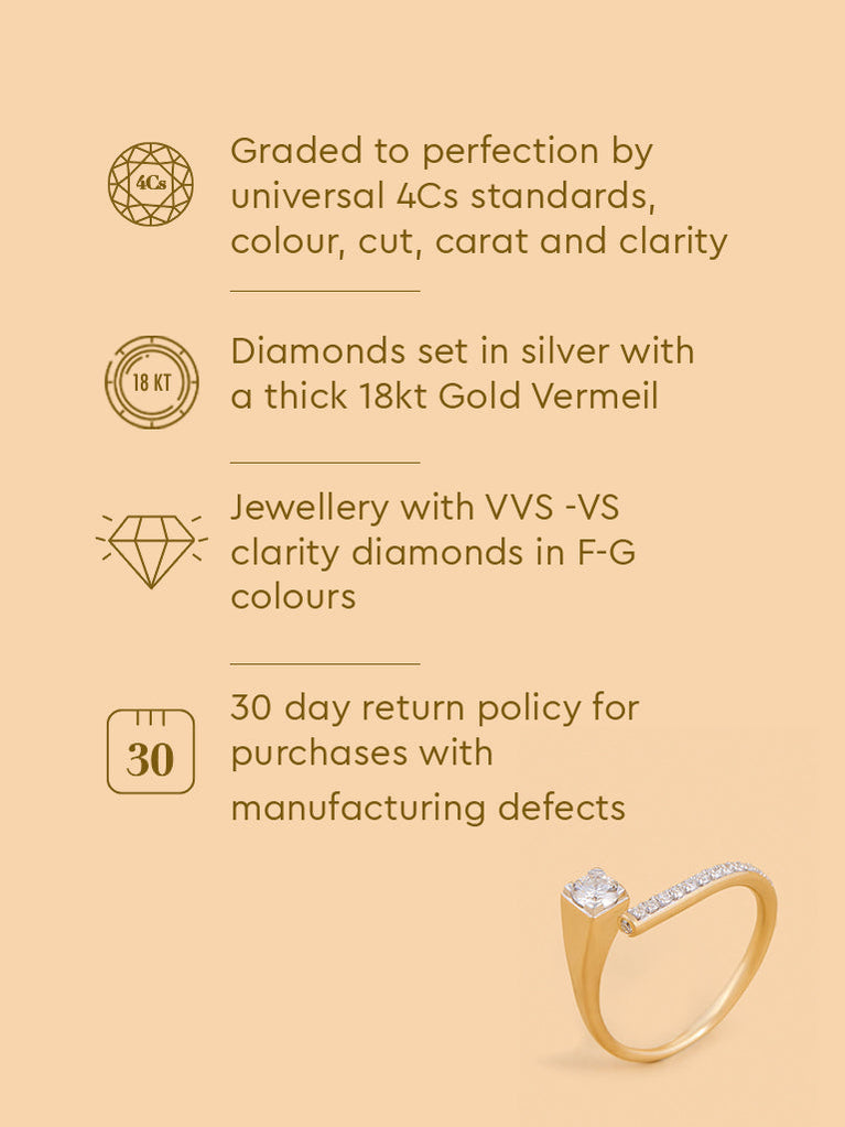 Stand out with this classic comet solitaire lab diamond ring. Made in gold vermeil, it offers a stunning design that is a guaranteed head turner