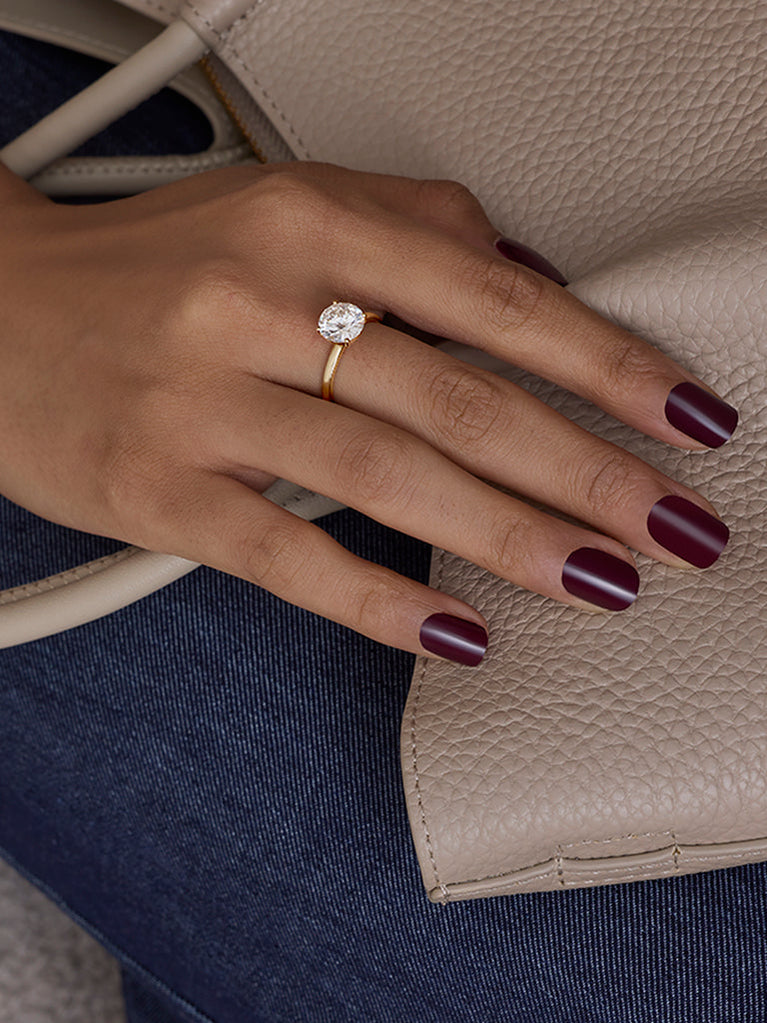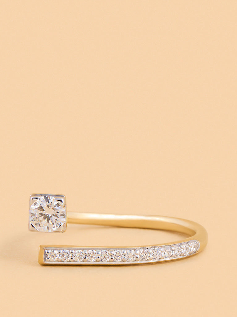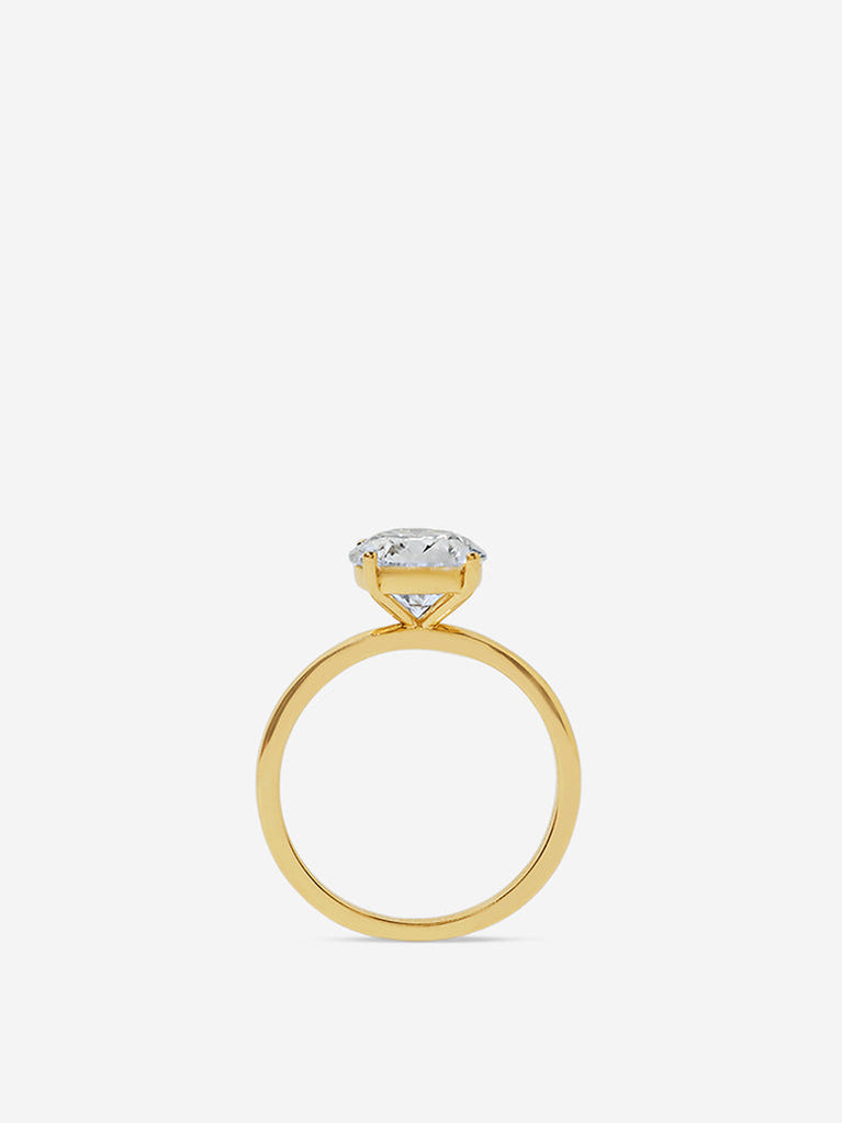 Defined by its clean silhouette and radiant presence, this ring features a brilliant lab-grown solitaire set in a polished gold-vermeil prong mount. The rounded band offers a smooth, elegant contour that draws attention to the stone’s luminous clarity. Designed to feel timeless yet contemporary, it brings a striking sense of refinement to the hand and pairs effortlessly with both everyday pieces and evening ensembles.