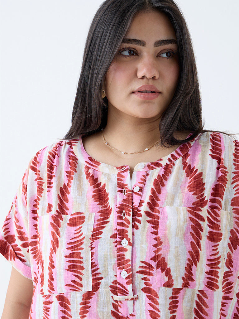 Turn casual days into an artful affair with this multicolour top from Gia, defined by striking abstract motifs. Cut from an ultra-lightweight fabric, it’s styled with a round neck, a short button placket and flowing dolman sleeves, while front pockets add a contemporary edge.