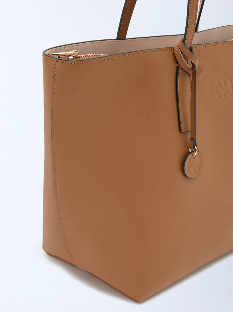 Details•Tan leather•Vegan nappa lining•Internal gold zip and slip pockets for security•Decorative leather POME charm