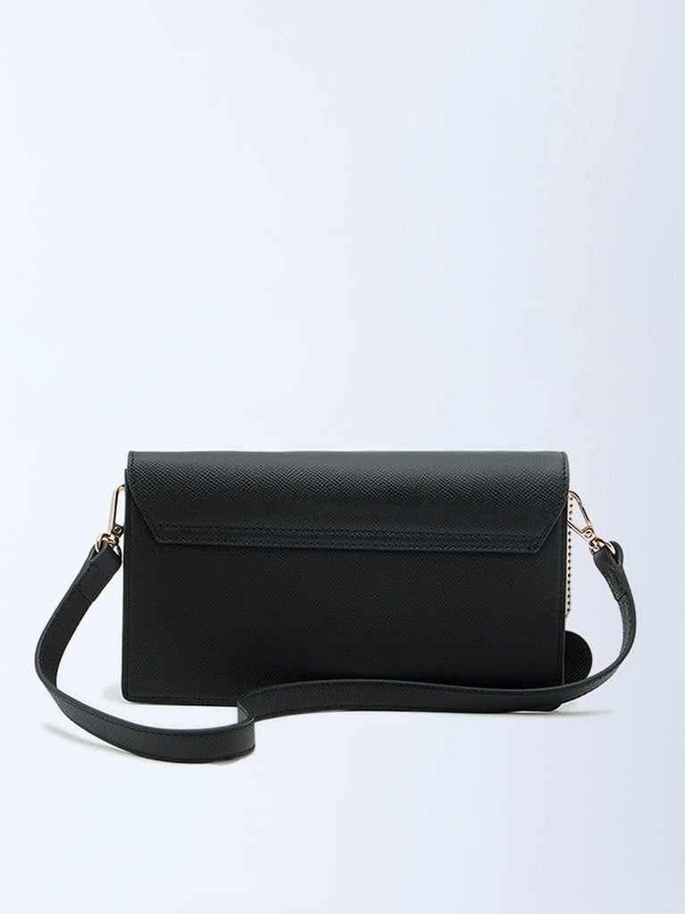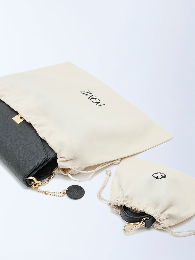 Details•Black leather•Quality lining•Detachable shoulder strap with pouch•Internal slip pocket•Gold push-lock closure•Decorative leather POME charm
