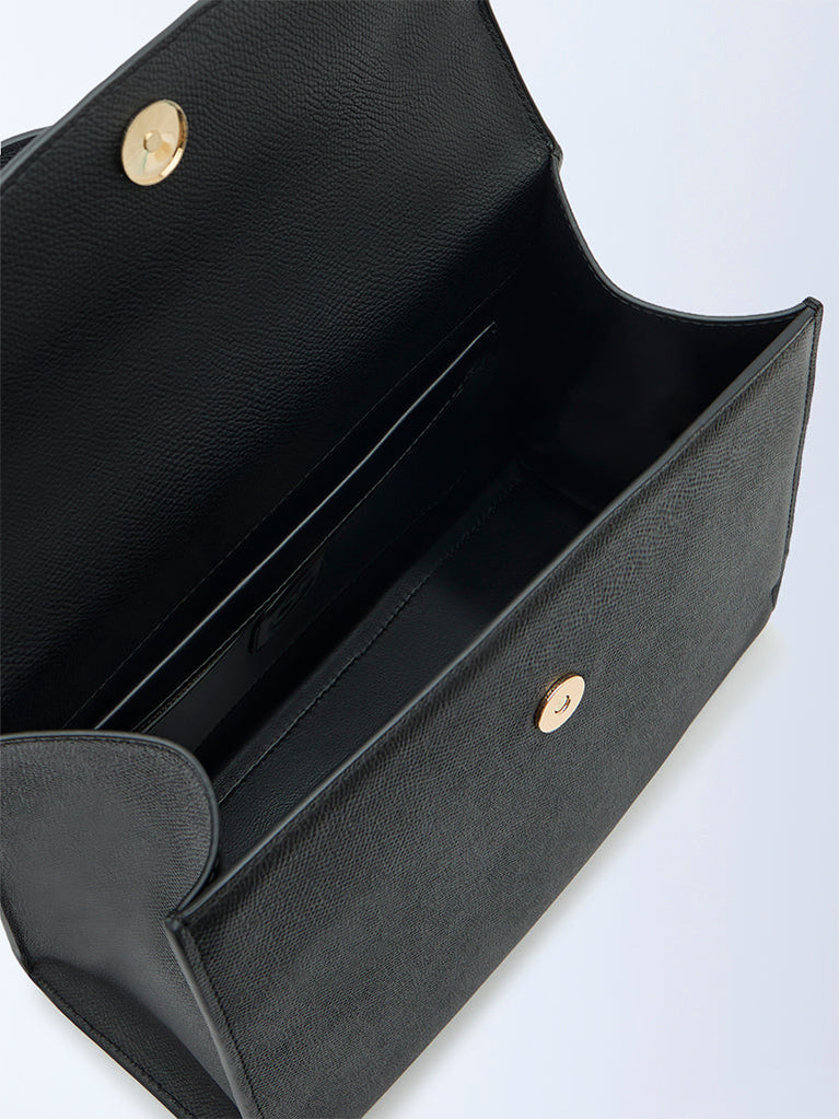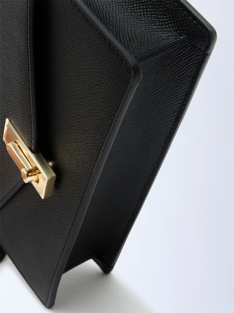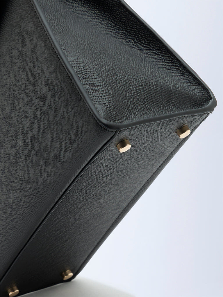 DescriptionA modern expression of a fashion classic design.Crafted from finest leather, it features a structured top handle, a signature push-lock closure, and a detachable strap for effortless crossbody wear.Polished and versatile, it is the perfect choice for days when you want to feel impeccably put together.