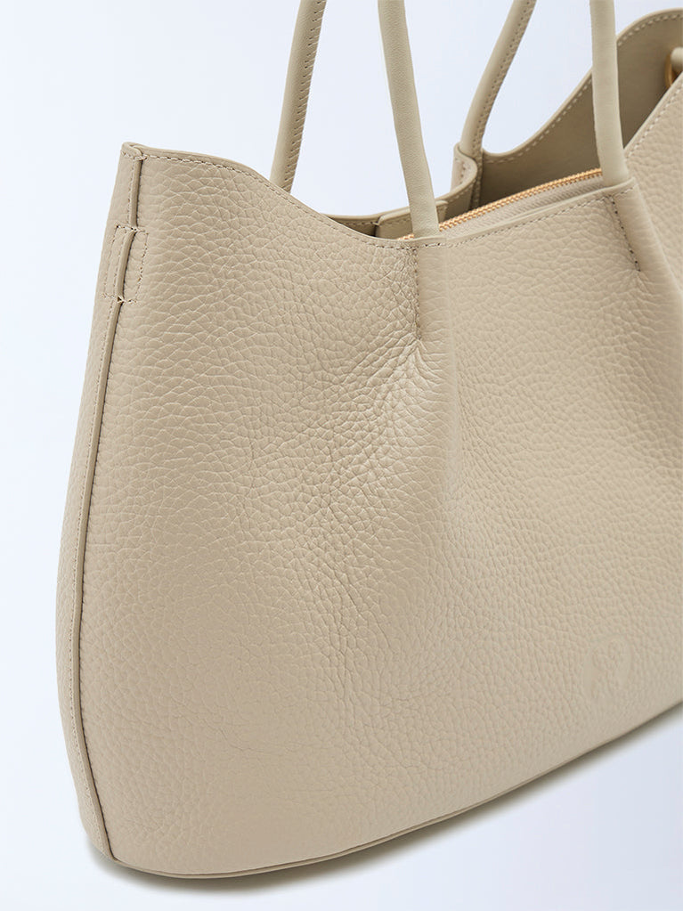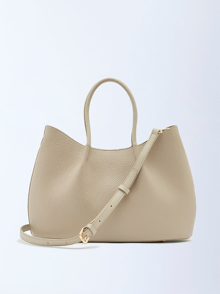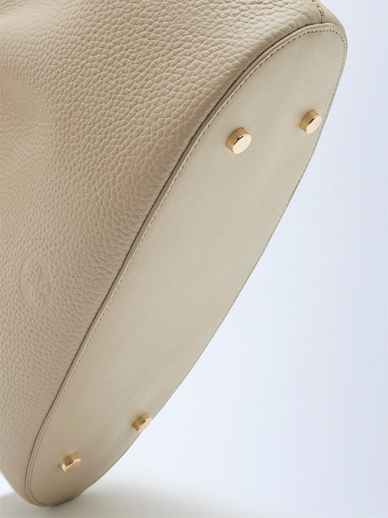 Details•Cream latte grain leather•Quality lining•Detachable shoulder strap with pouch•Internal gold zip and slip pockets•Protective gold feet