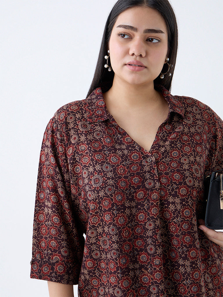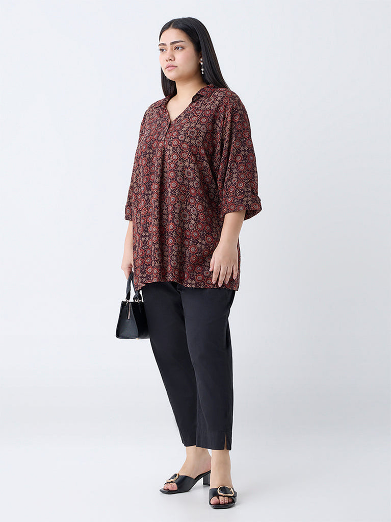 Diza brings you this charming red tunic adorned with delicate floral prints for a refreshing appeal. Designed with a graceful V-neck secured with a single button and three-quarter sleeves featuring upturned hems, it’s perfect for chic and versatile styling.