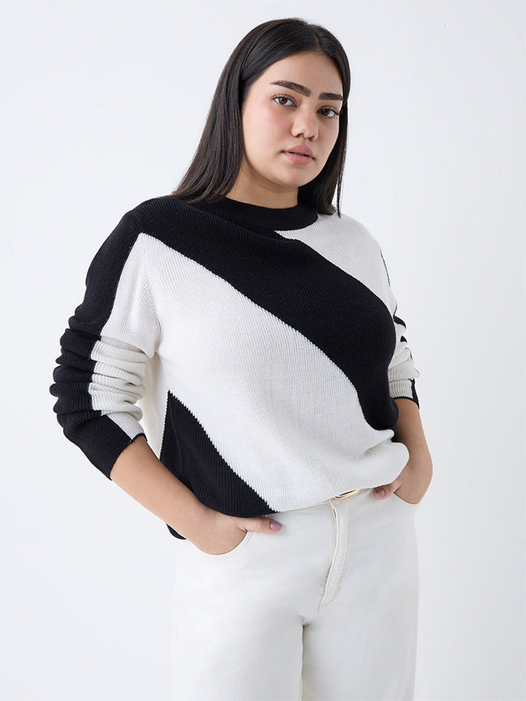 Gia Black Colour-Blocked Knit-Textured Sweater