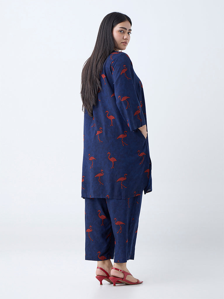 Diza Navy Flamingo Design A-Line Kurta