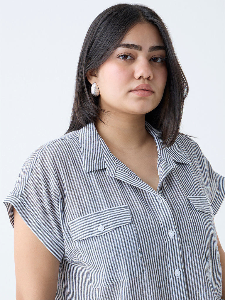 Gia Black Stripe Printed Cotton Shirt