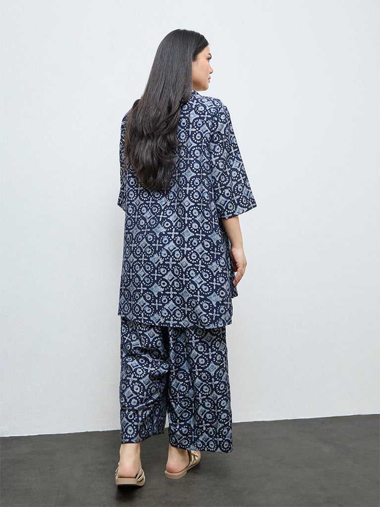 Diza Indigo Printed High-Low Tunic