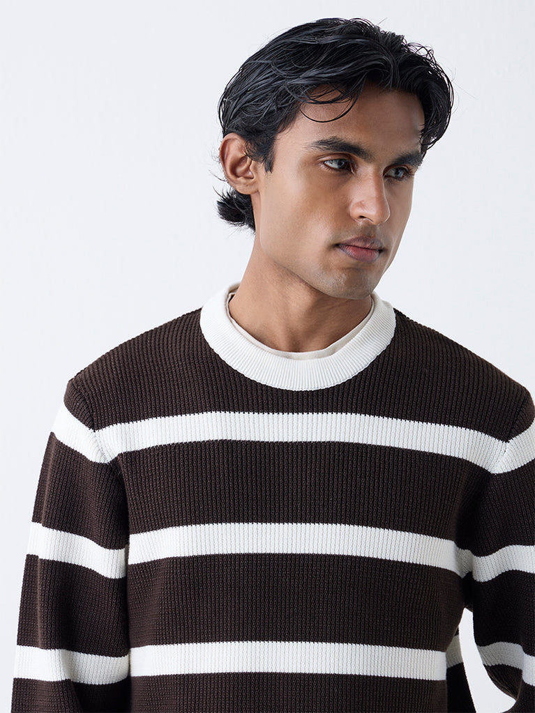 Ascot Dark Brown Striped Relaxed-Fit Cotton-Blend Sweater