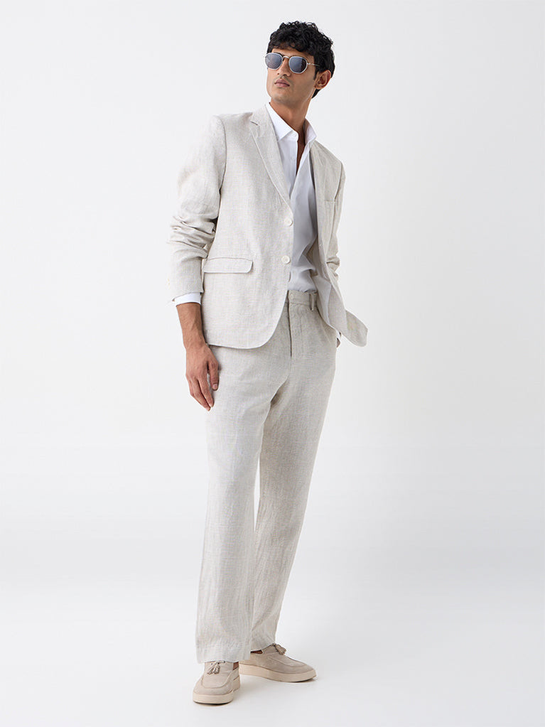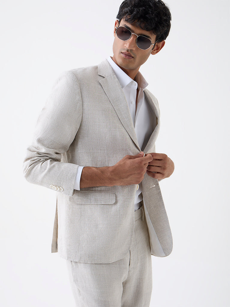 Ascot Beige Checkered Relaxed-Fit Linen Blazer