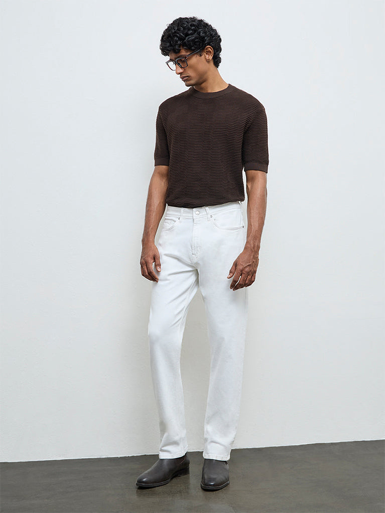Ascot Dark Brown Textured Relaxed-Fit Cotton T-Shirt