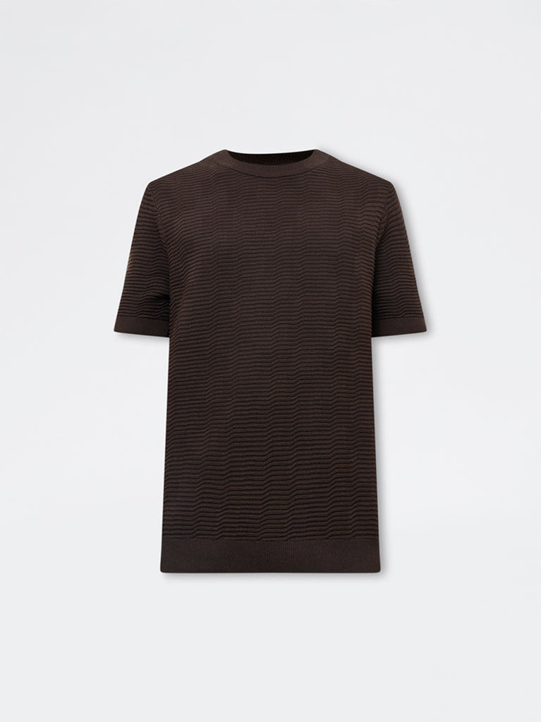 This dark brown t-shirt from Ascot brings a refined ease to your everyday wardrobe with its tactile textured surface. Shaped in a relaxed fit, it features a crew neck and short sleeves for classic appeal. Crafted from a cotton-rich fabric, it offers a breathable feel suited for all-day wear. A versatile essential that balances clean design with effortless comfort.