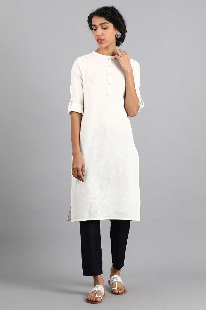 A versatile style essential, this beige straight kurta in cotton opens at the front for effortless layering. Its clean neckline and side slits add ease, while the muted hue makes it a perfect canvas for multiple looks—dress it up with palazzos or down with jeans.