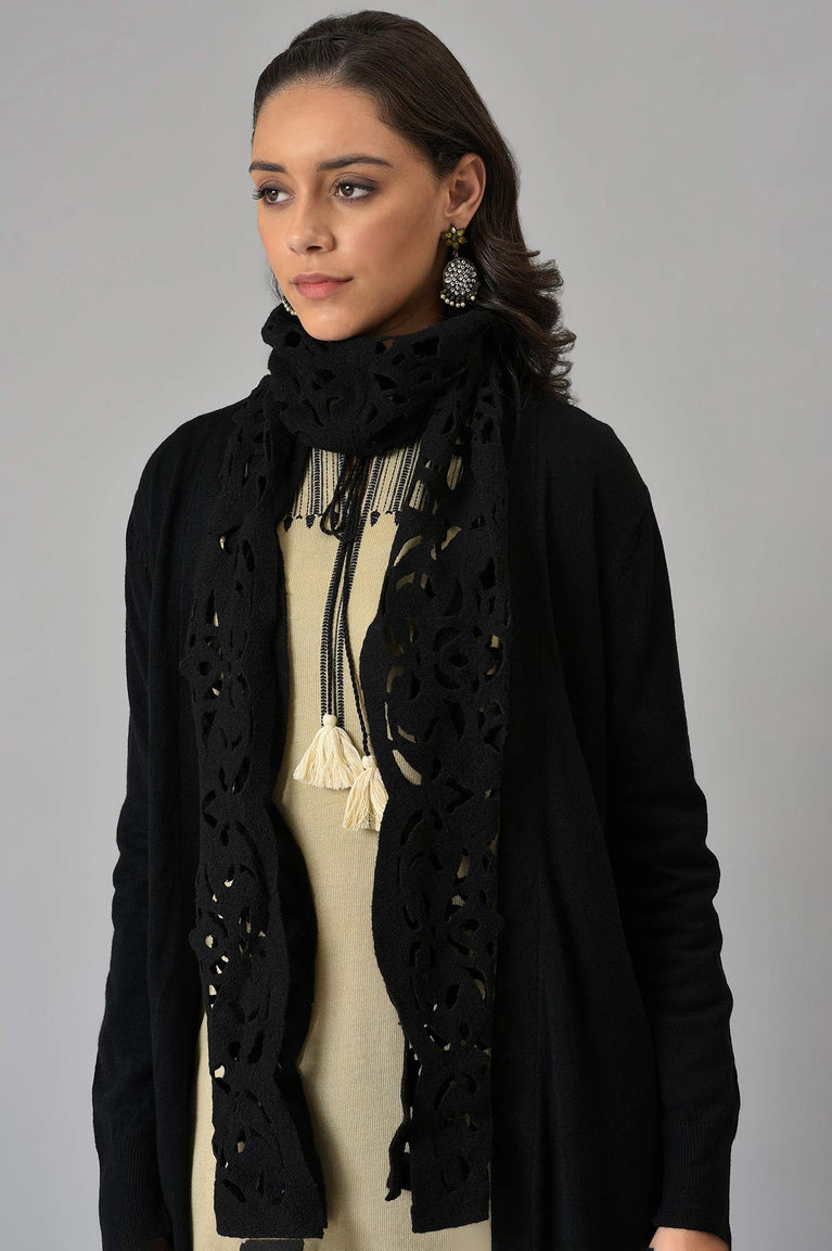 Black Beadwork Embroidery Kurta In Textured Cotton