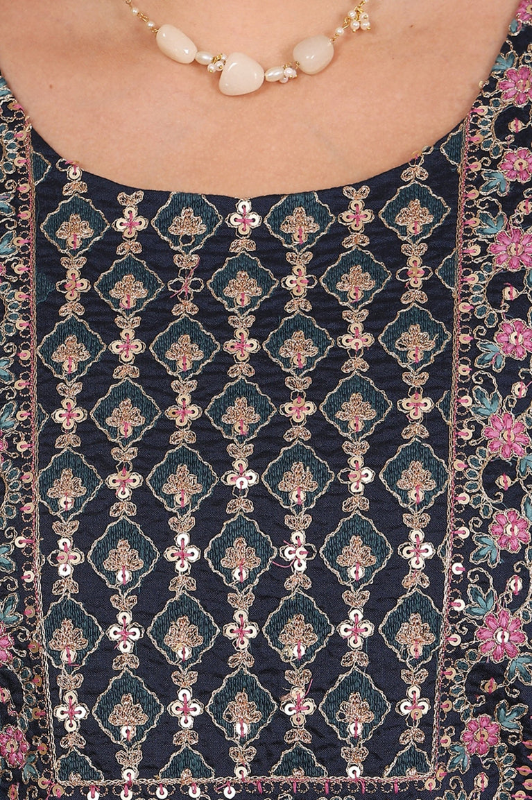 The blue embroidered anarkali dress sounds absolutely captivating for this festive and wedding season! Navy blue is such a rich and bold color, perfect for making a statement at any event. The embroidery on yoke, neckline and sleeves' hemline likely adds intricate detail and elegance, enhancing the overall beauty of the dress. Anarkalis have a graceful flow, making them perfect for festive occasions, weddings, or any celebration.