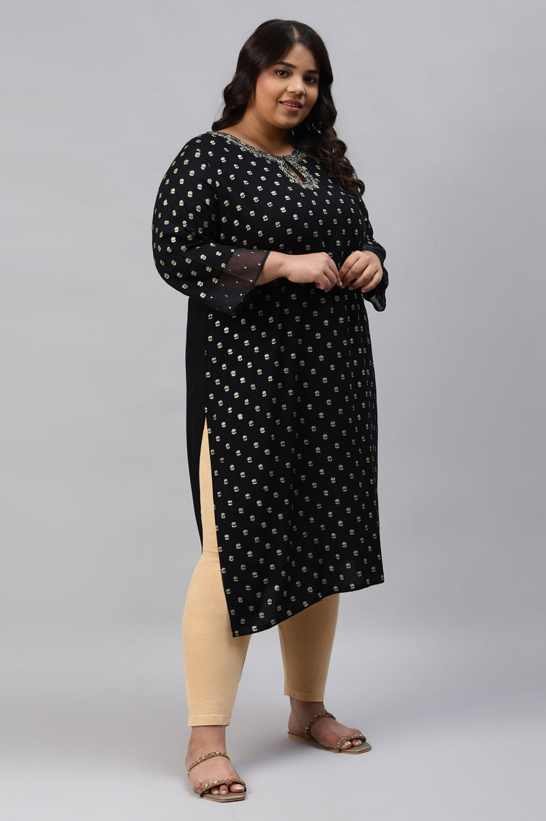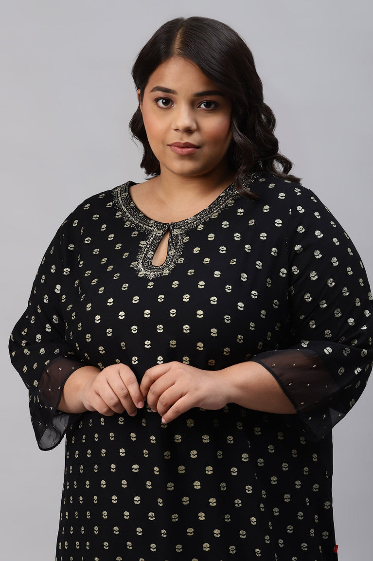Black Printed Plus Size kurta With Embroidery And Sequins