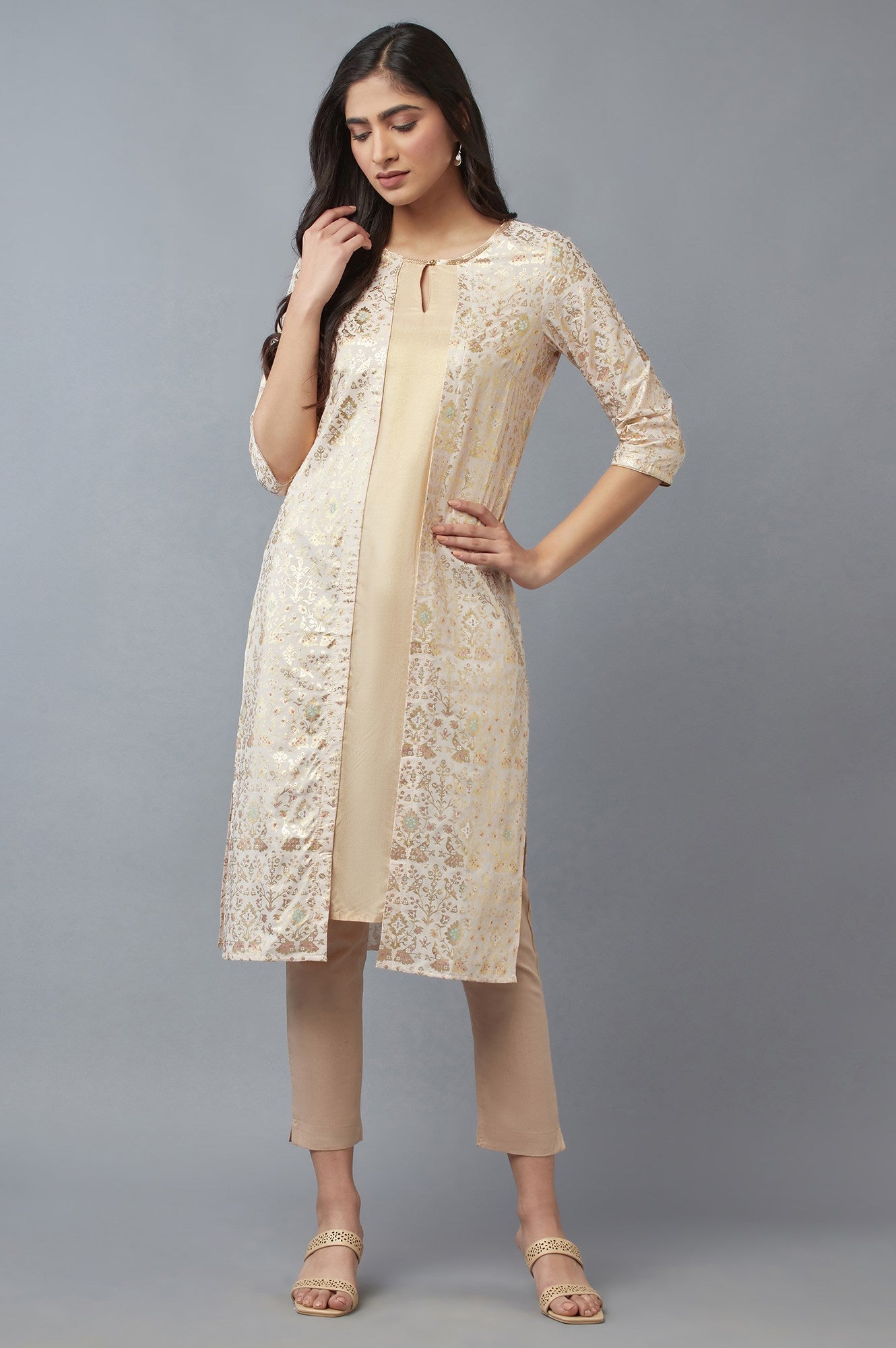 Well-tailored to offer you a perfect fit, this beige cotton crop trouser from W's #UNETHNICALS collection is a great add-on to your wardrobe.