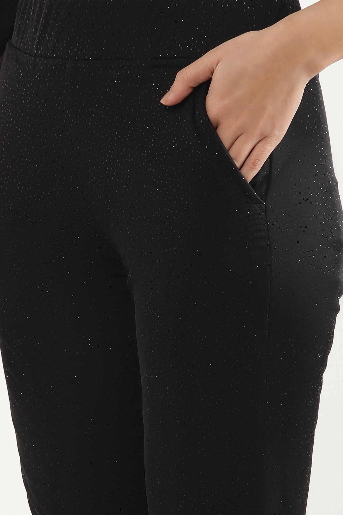 Embrace the festive season with this stunning black net tiered sharara. The glitter highlights add a touch of glamour, while the elasticized waist belt ensures a perfect fit. With two functional side pockets, you can carry your essentials effortlessly. Pair this sharara with a western top and heels for a stylish fusion look.