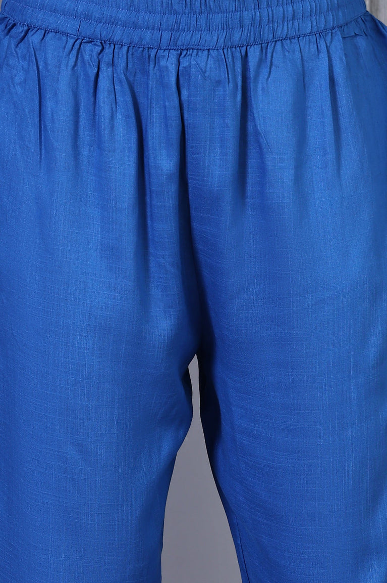 This blue rayon flared kurta and slim pant set combines comfort, elegance, and thoughtful design in a way that fits seamlessly into your wardrobe. The blue tone lends a calming yet refined presence, making it ideal for day-to-evening transitions. The silhouette flatters most body types, while the choice of rayon fabric ensures breathability and movement. Whether styled for festive gatherings, office hours, or weekend outings, this outfit adapts with grace. The coordinated bottoms—be it pants, jeggings, or skirts—add functional elegance and lend structure to the ensemble. Subtle accents like thread work, zari, or embroidery further enhance its ethnic charm without overwhelming the design. Layer it with delicate jewellery and a tonal dupatta to dress it up, or keep it minimal for everyday grace. This rayon kurta set brings versatility and fashion-forward ease to modern women's ethnic wear collections.
