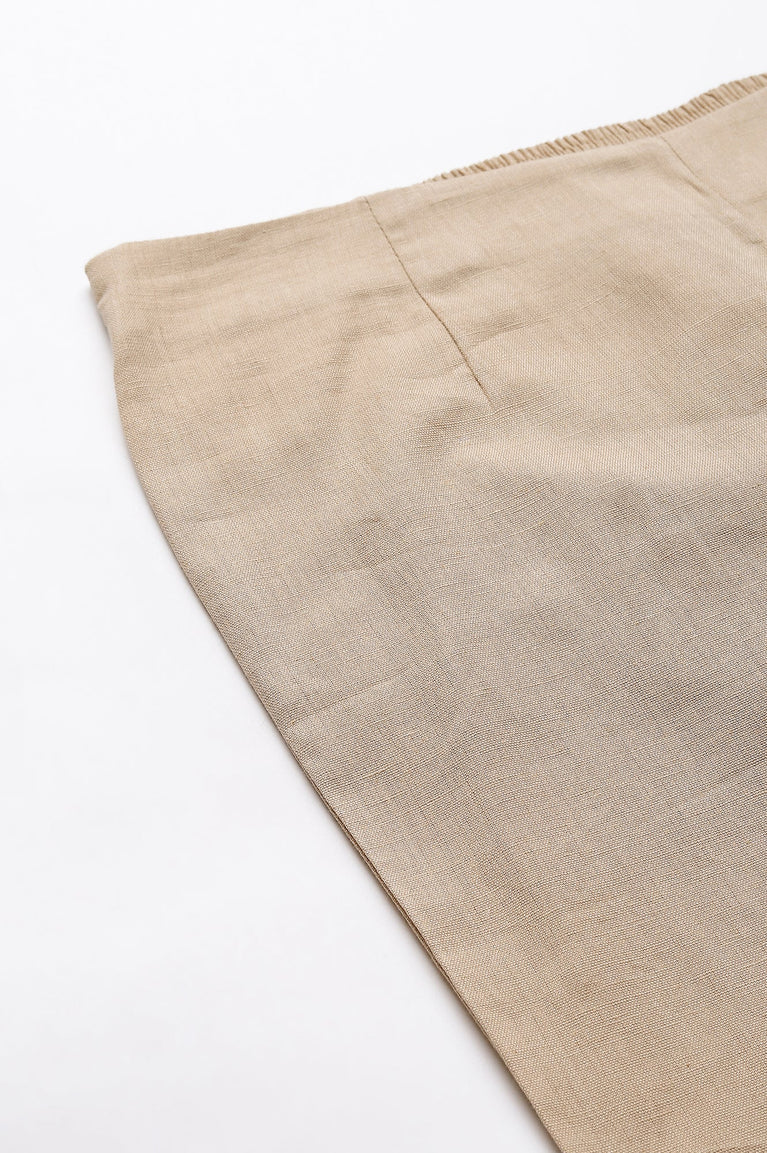 Beige Linen Straight Kurta With Multi-Coloured Thread Work