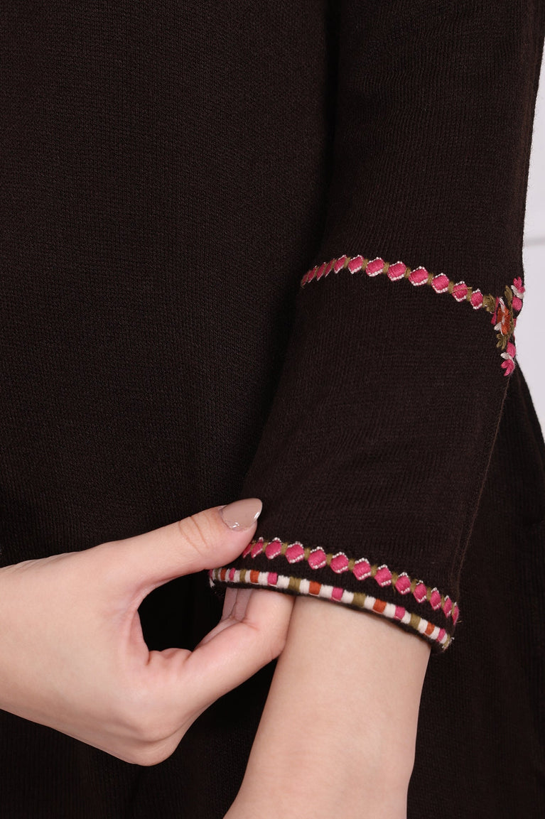 Brown Embroidered Straight Acrylic Tunic