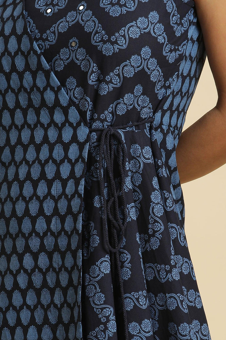 Blue Mock Wrap Print Mix Kurta