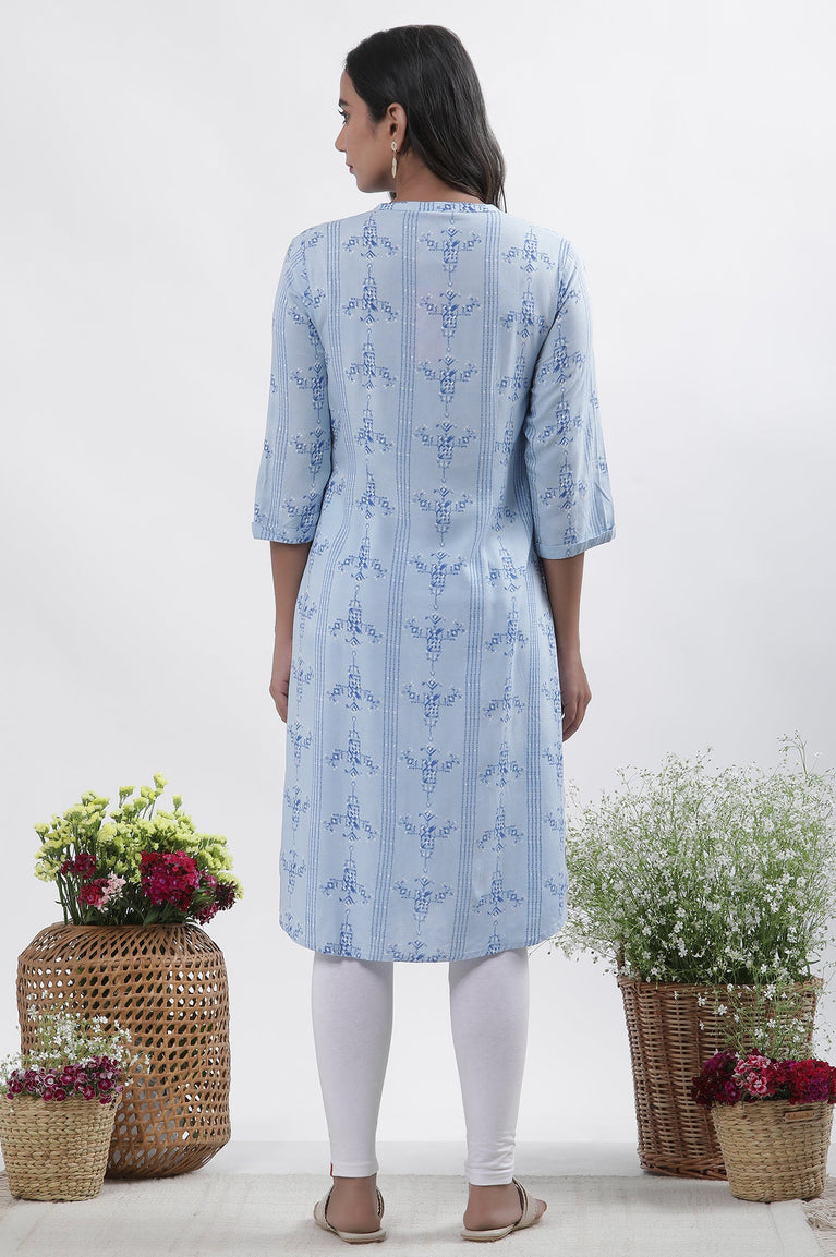 Blue Printed A-Line Kurta