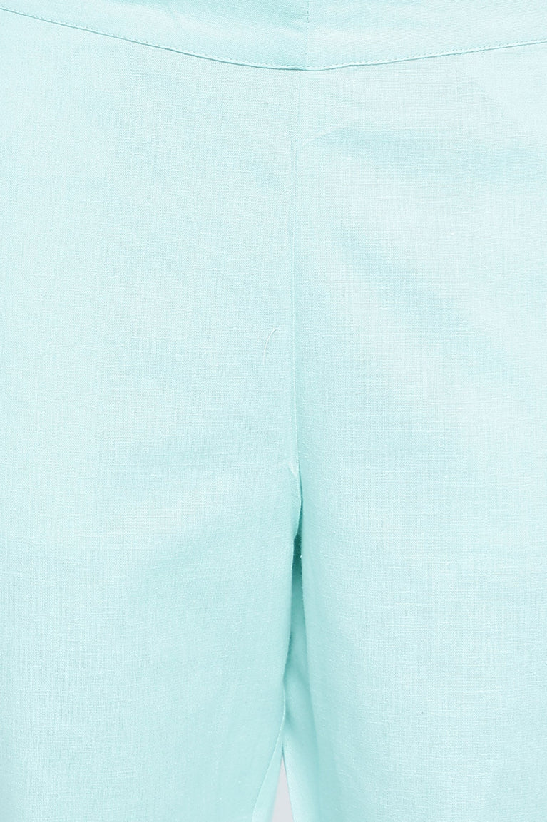 Blue Solid Cotton Flax Ankle Length Trousers