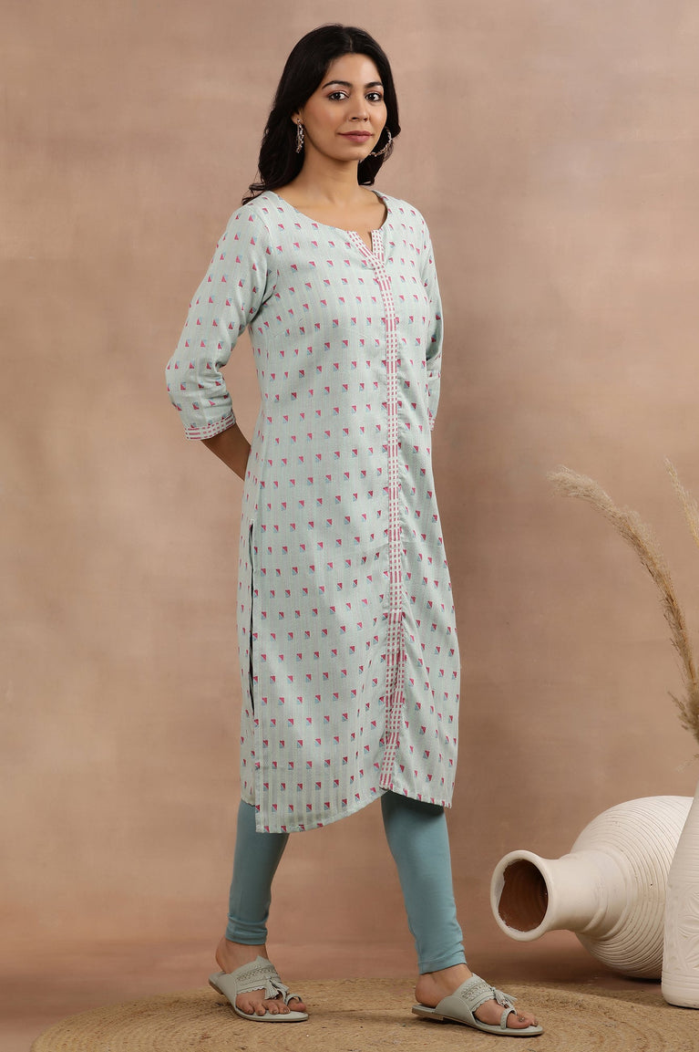 Embrace casual elegance with this charming women's kurta. Made from 100% pure cotton, this woven garment offers unparalleled comfort for everyday wear. The straight cut flatters all body types, while the keyhole neckline adds a subtle feminine touch. The three-quarter sleeves strike the perfect balance between style and practicality. Adorned with a delightful floral print in soothing blue hues, this kurta brings a fresh and breezy vibe to your wardrobe. Ideal for casual outings, this ethnic piece combines traditional silhouettes with modern prints. The breathable cotton fabric ensures all-day comfort, making it perfect for various casual occasions. This kurta is a testament to effortless style and comfort, seamlessly blending ethnic charm with contemporary fashion.