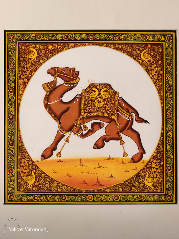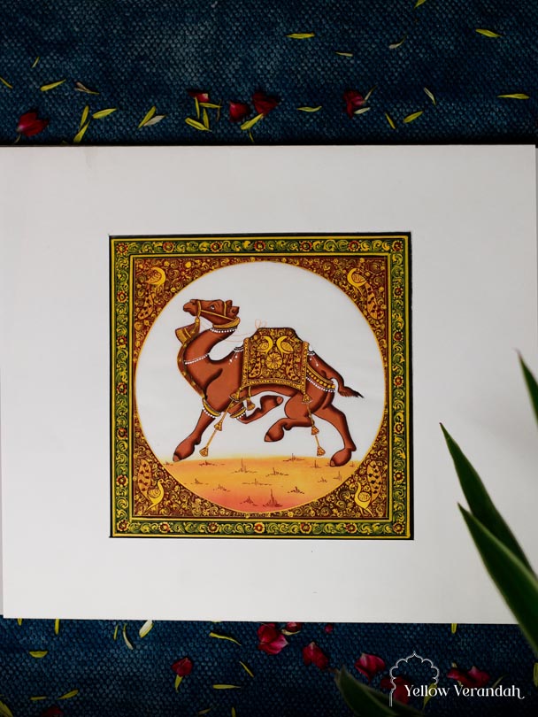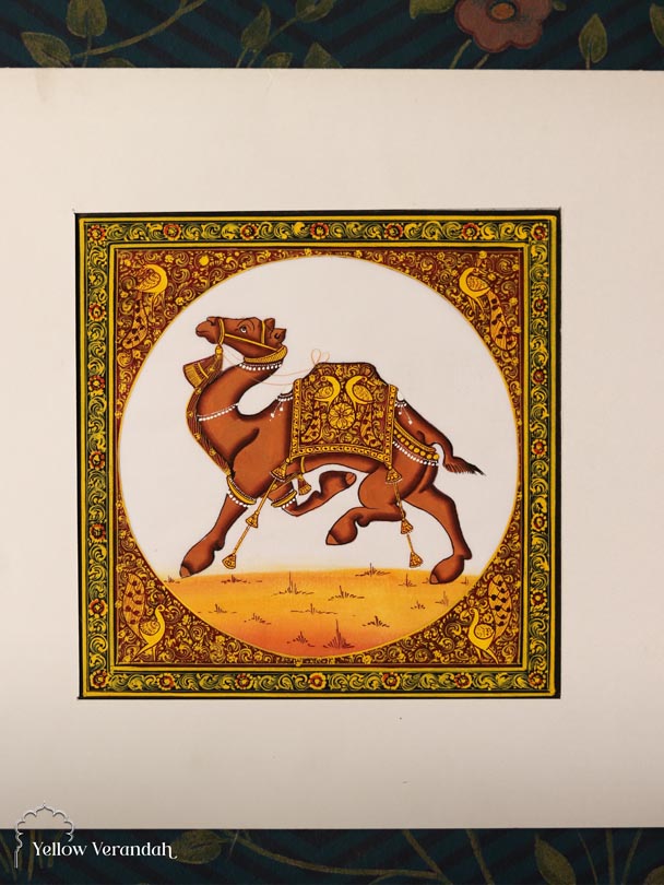 Original Mughal Painting - Camel in miniature style, created by local artist in Jaipur, Rajasthan.