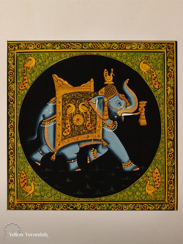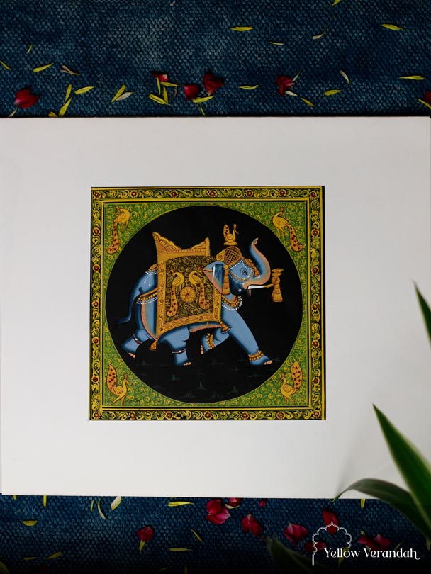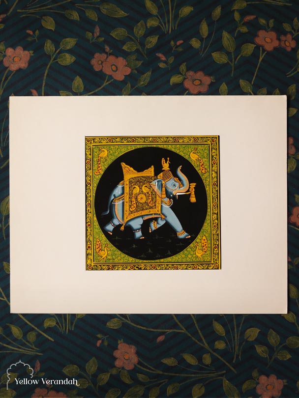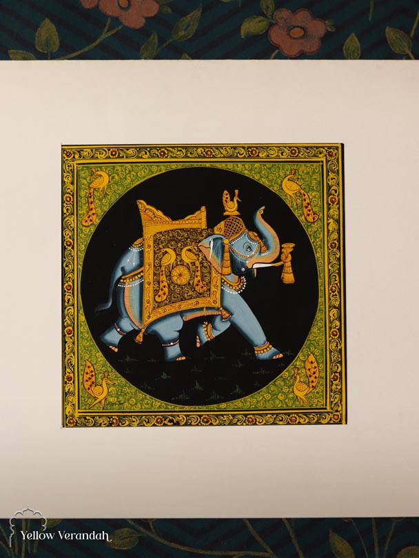 Original Mughal Painting - Elephant in miniature style, created by local artist in Jaipur, Rajasthan.
