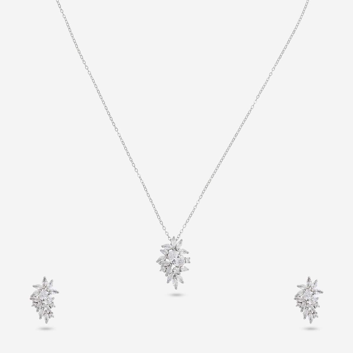 92.5 Silver Pendant with Chain and Earring Set 194804