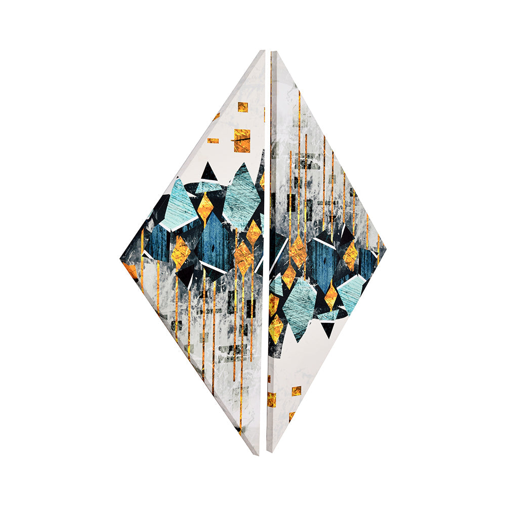 Abstract Wave Paintings Set of 2 (Seagreen & Gold)