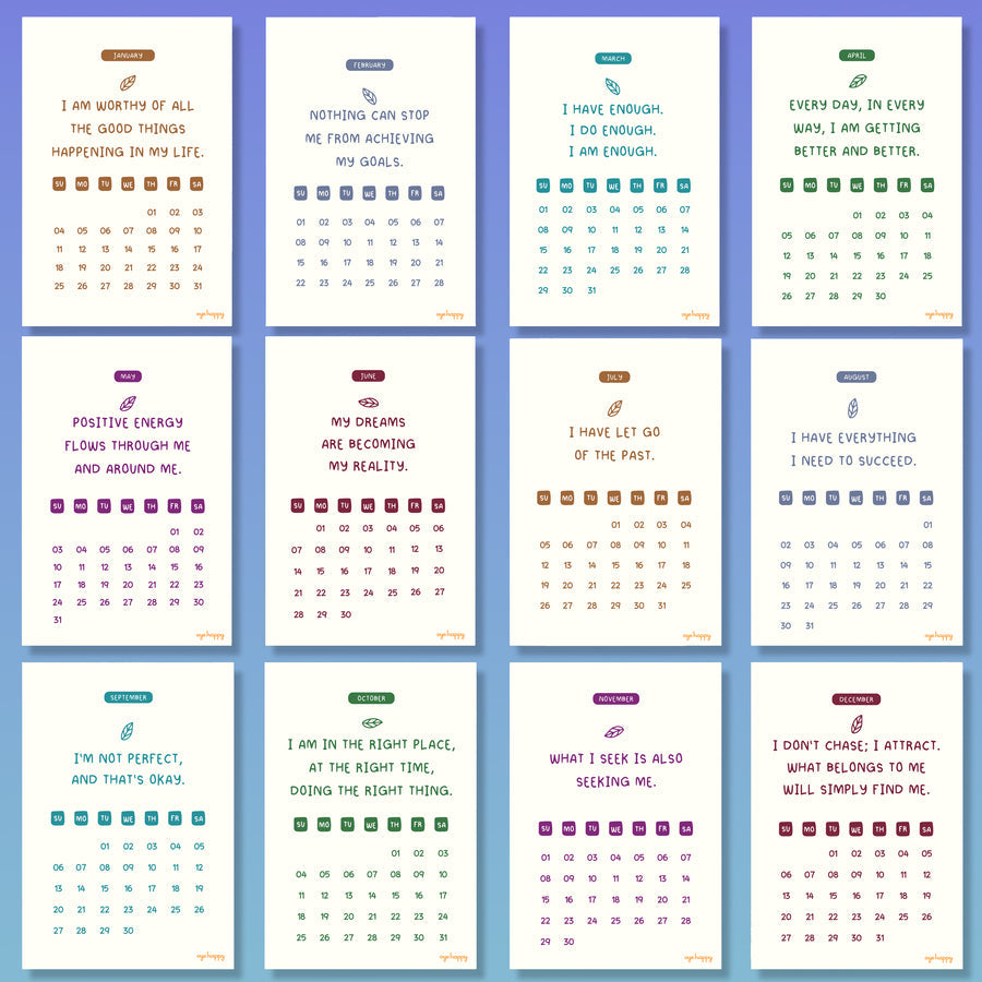 This Affirmation Calendar gives you and your loved ones a reason to smile each month with its cute design and powerful messages. From “I am enough” to “I am worthy of good things” this calendar keeps the positivity flowing throughout the year.