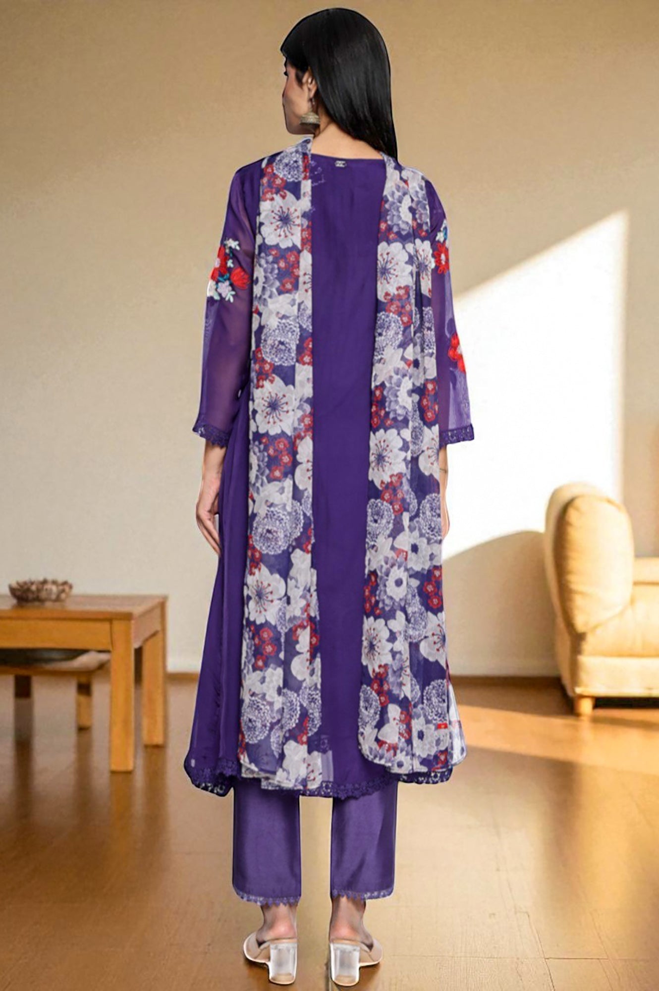 Elegant and contemporary, this amethyst purple organza kurta set features an A-line silhouette, structured pants, and a sheer dupatta. The rich colour and airy fabric make it ideal for festive evenings or intimate functions. Perfect for women who want sophisticated yet lightweight ethnicwear.