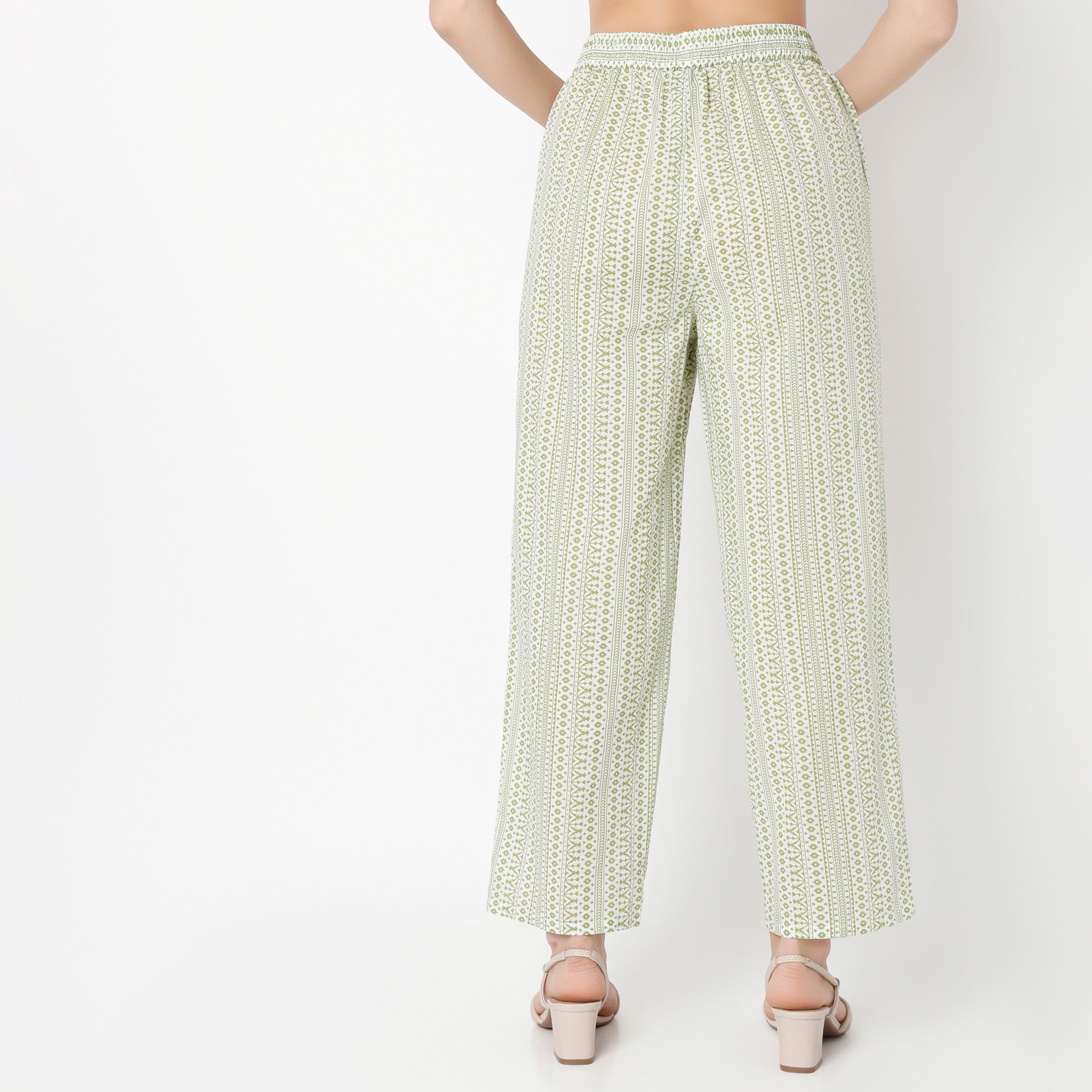 Step into effortless style and comfort with these Straight Fit Printed Ankle Length Mid Rise Pants. Crafted from 100% cotton, these pants offer a breathable and soft touch against your skin, making them perfect for all-day wear. The woven fabric ensures durability, while the printed pattern adds a touch of flair to your wardrobe. Whether you're heading to the office or a casual outing, these pants provide the perfect blend of style and functionality.