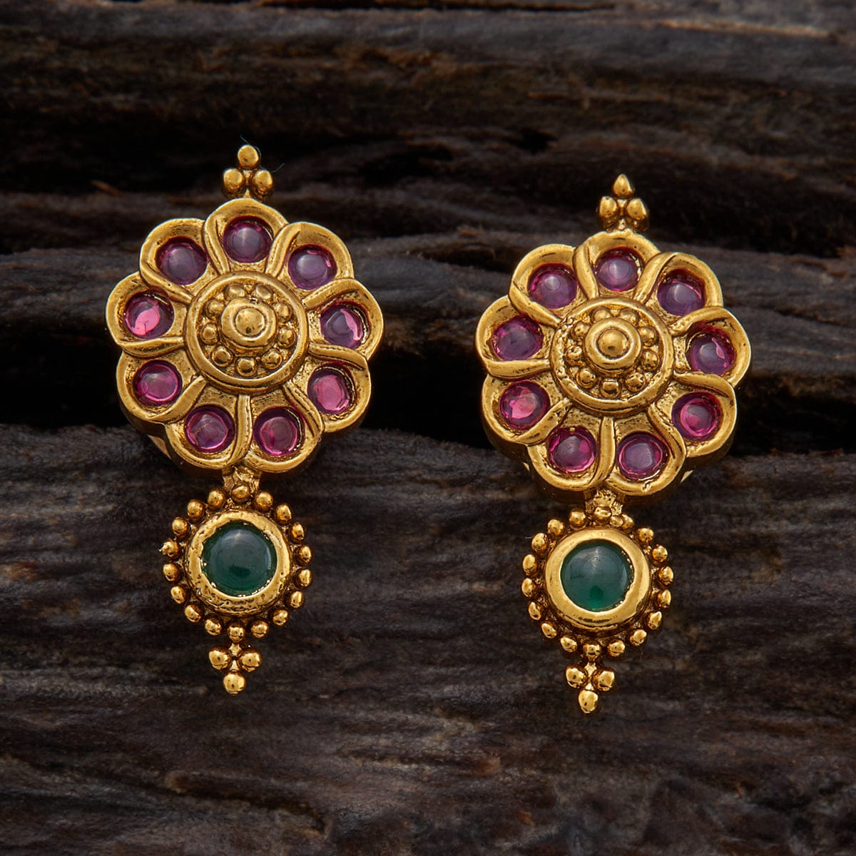 Try our vintage earrings with green synthetic stones and beads, and gold polish if you're seeking lightweight statement items. Both a push-back closure and stud styling are available. Its attractive style, which is comfortable on the ears and looks fantastic with your traditional outfits, only furthers its allure. So, don't wait and grab your pair now.