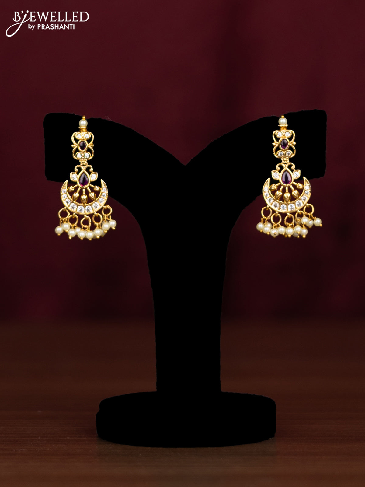 Antique guttapusalu haaram chandbali design with pink kemp & cz stones and pearl hangings