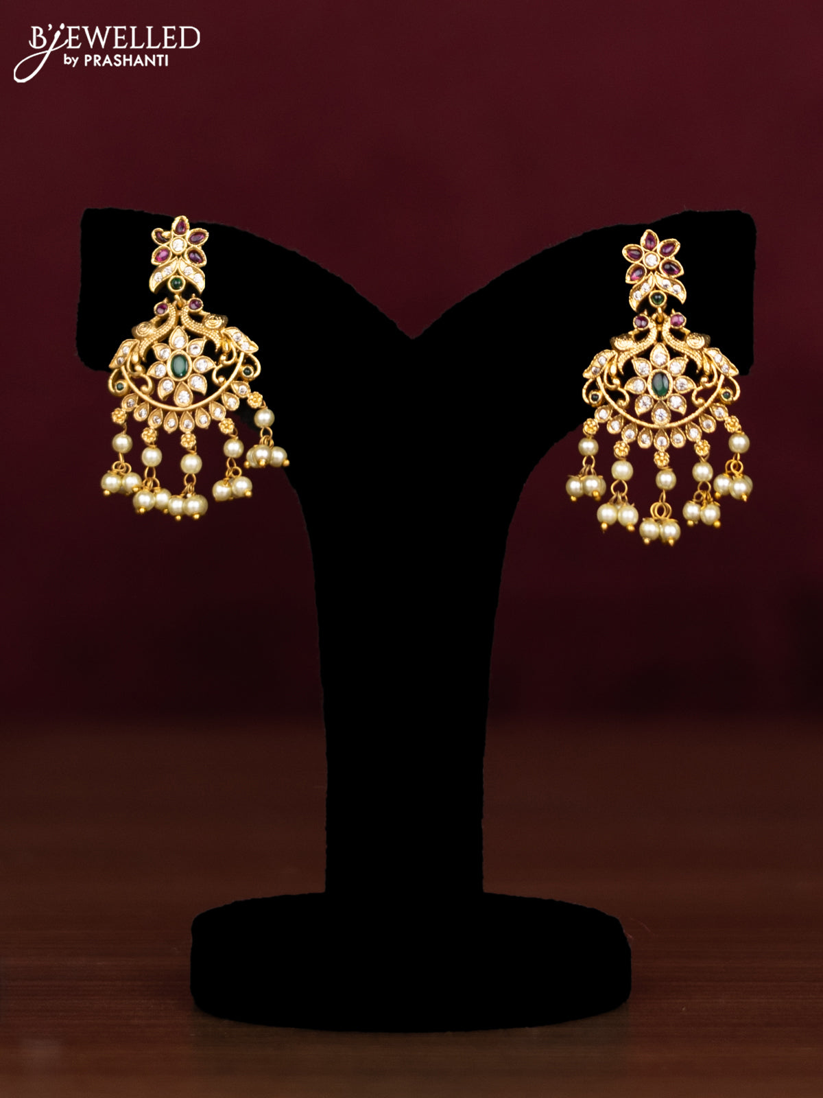 Antique guttapusalu necklace peacock design with kemp & cz stones and pearl hangings