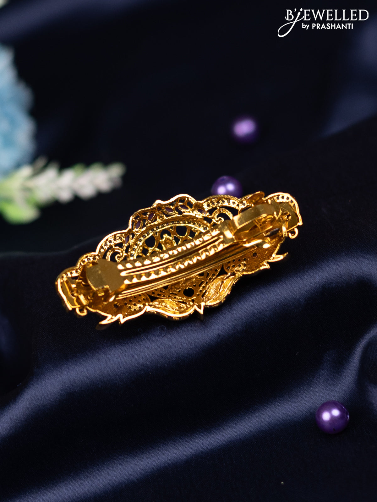 Antique hair clip medium size lakshmi design with kemp and cz stones
