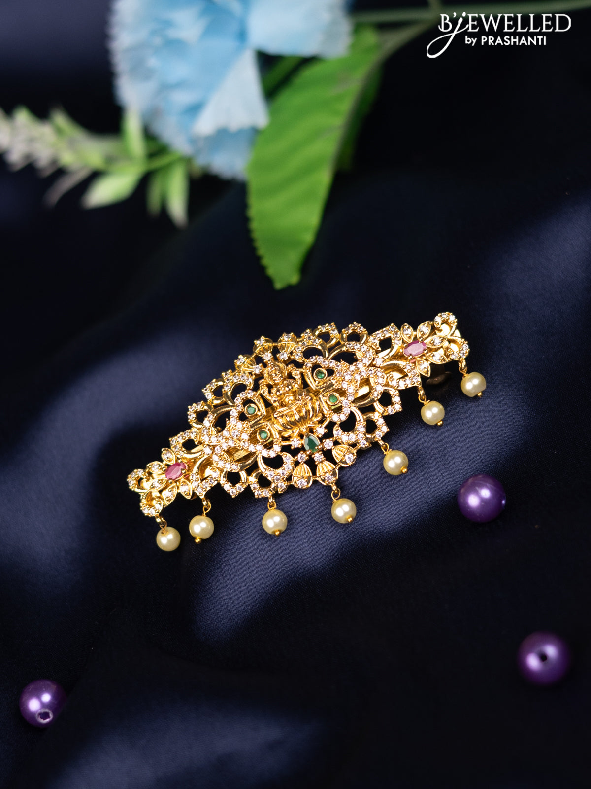 Antique hair clip medium size with kemp & cz stones and pearl hangings