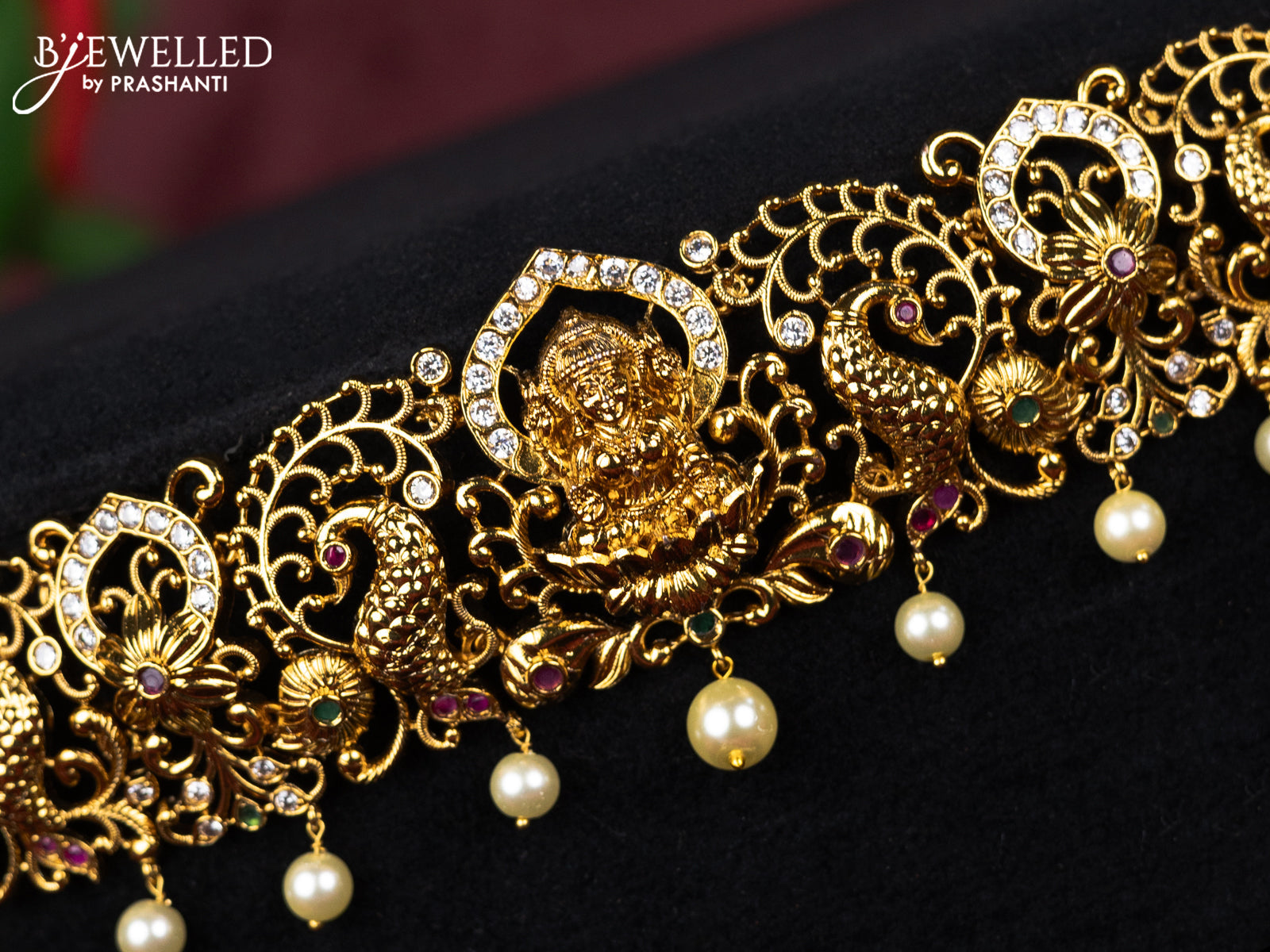 Antique hip belt lakshmi & peacock design with kemp & cz stones and pearl hangings