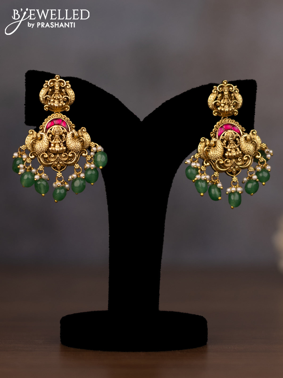 Antique necklace lakshmi design with jadau stones and green beads hanging
