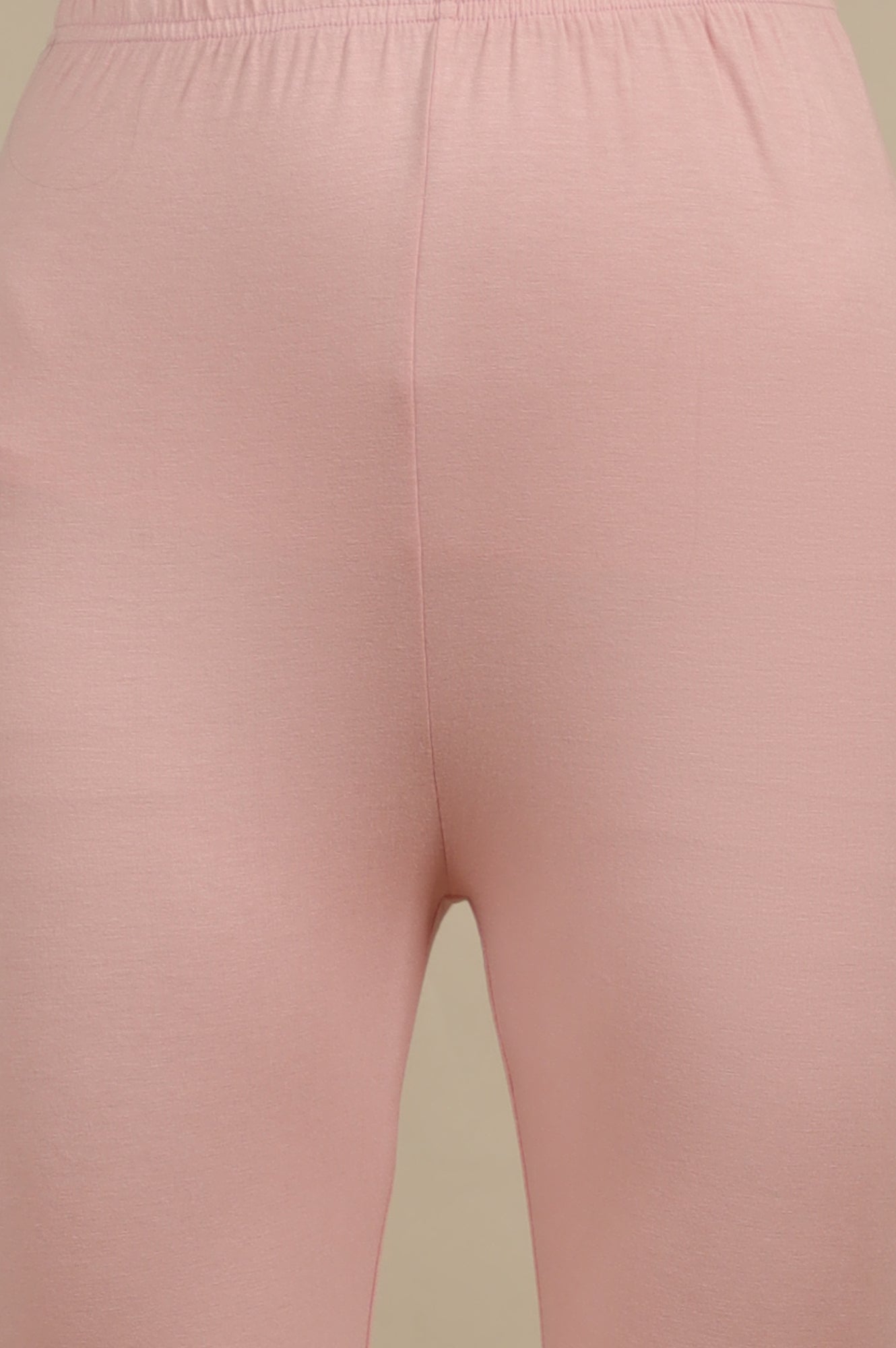 Apricot Pink Floral Printed Sheer Anarkali Kurta, Leggings and Dupatta Set