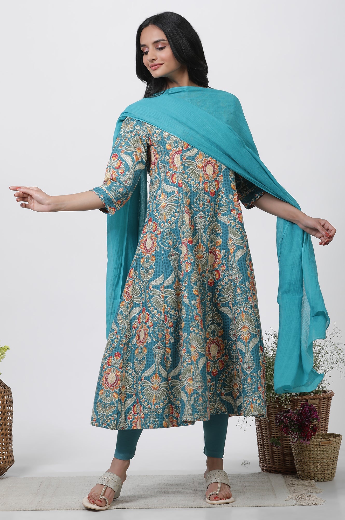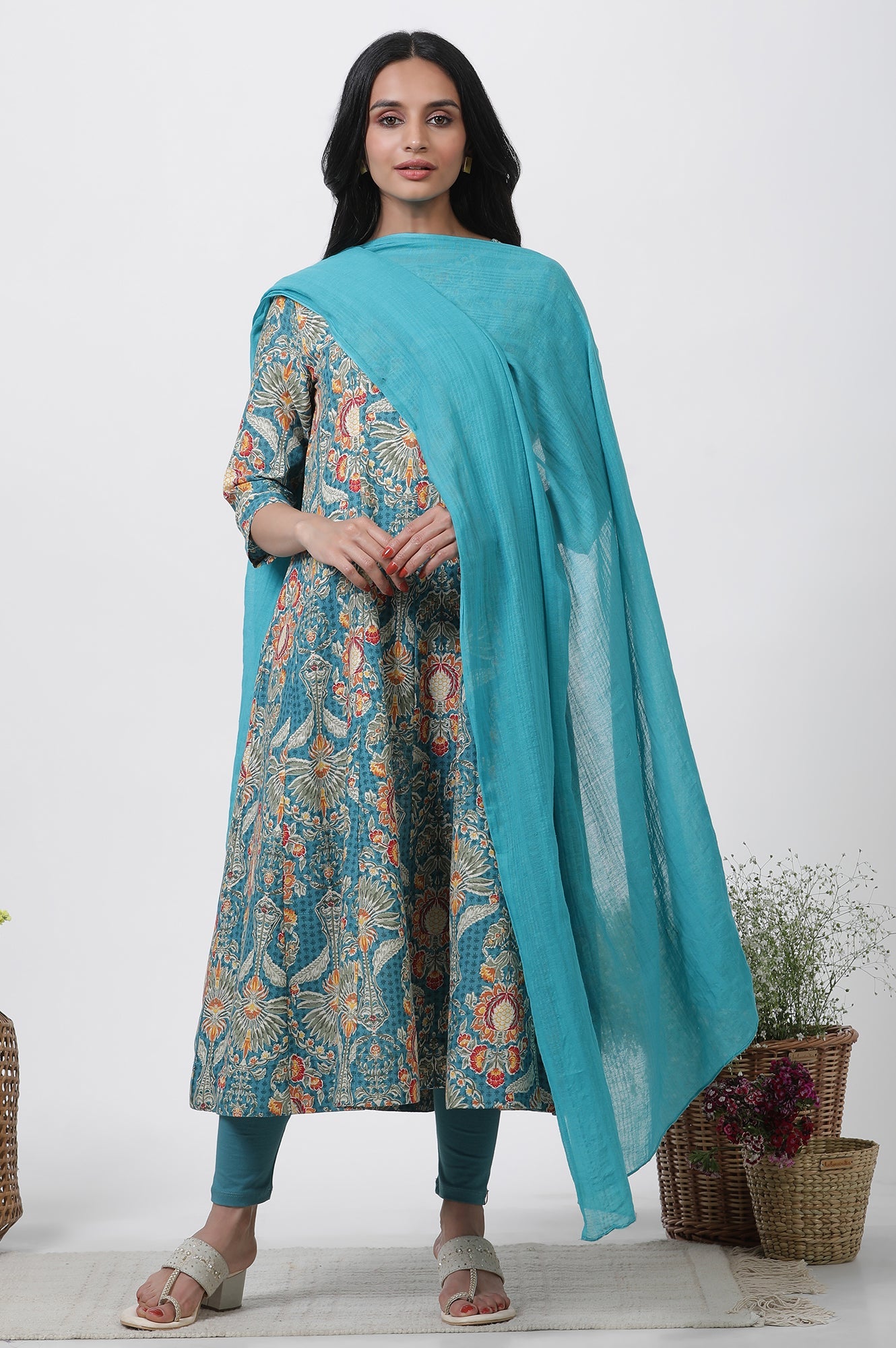 Aqua Blue Solid Dupatta