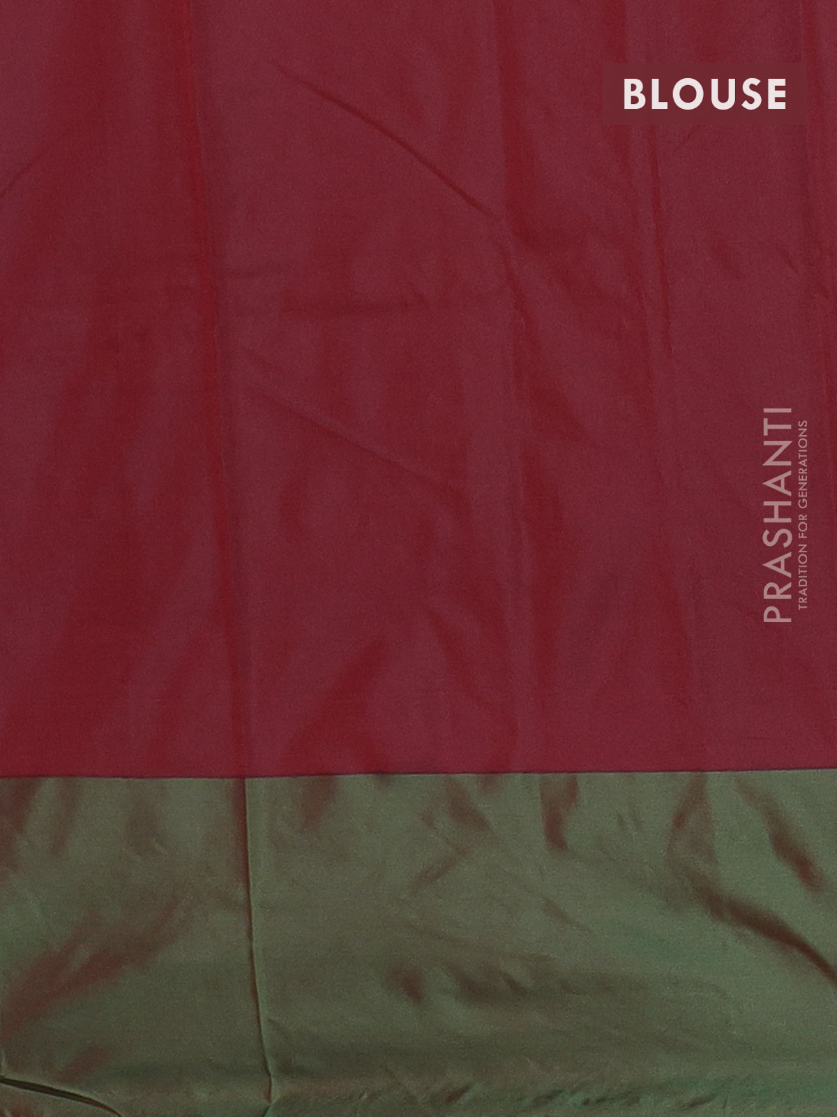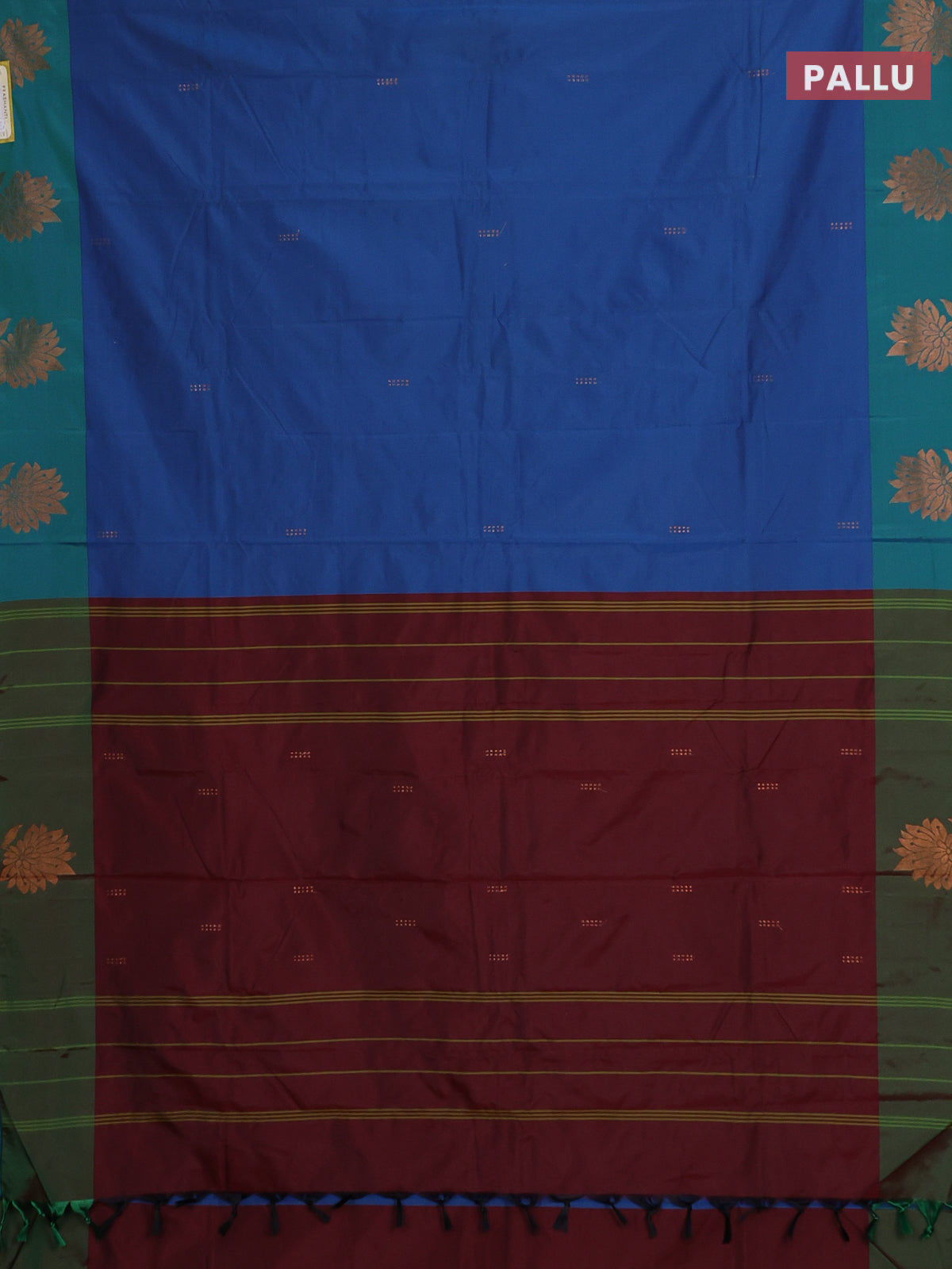 Arani semi silk saree blue and dual shade of green with copper zari woven buttas and copper zari woven butta border