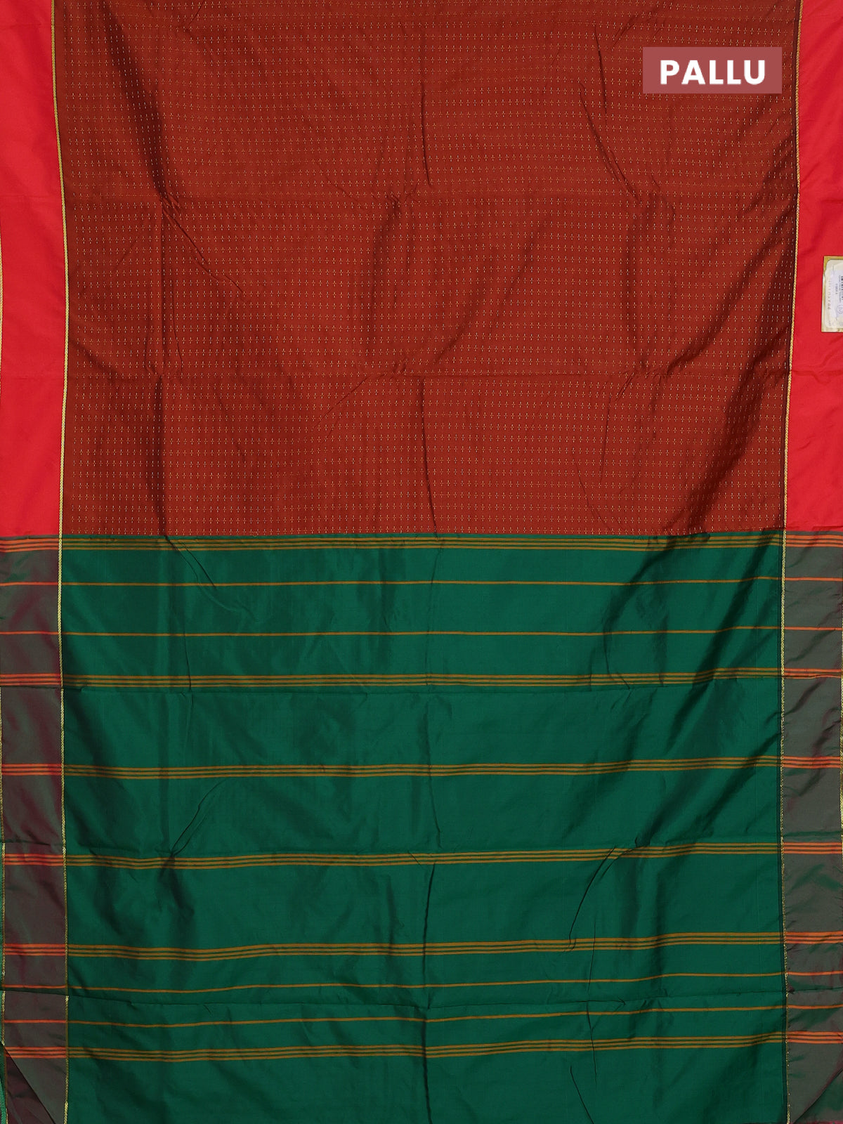 Arani semi silk saree brown shade and green with allover thread weaves and rettapet zari woven border`