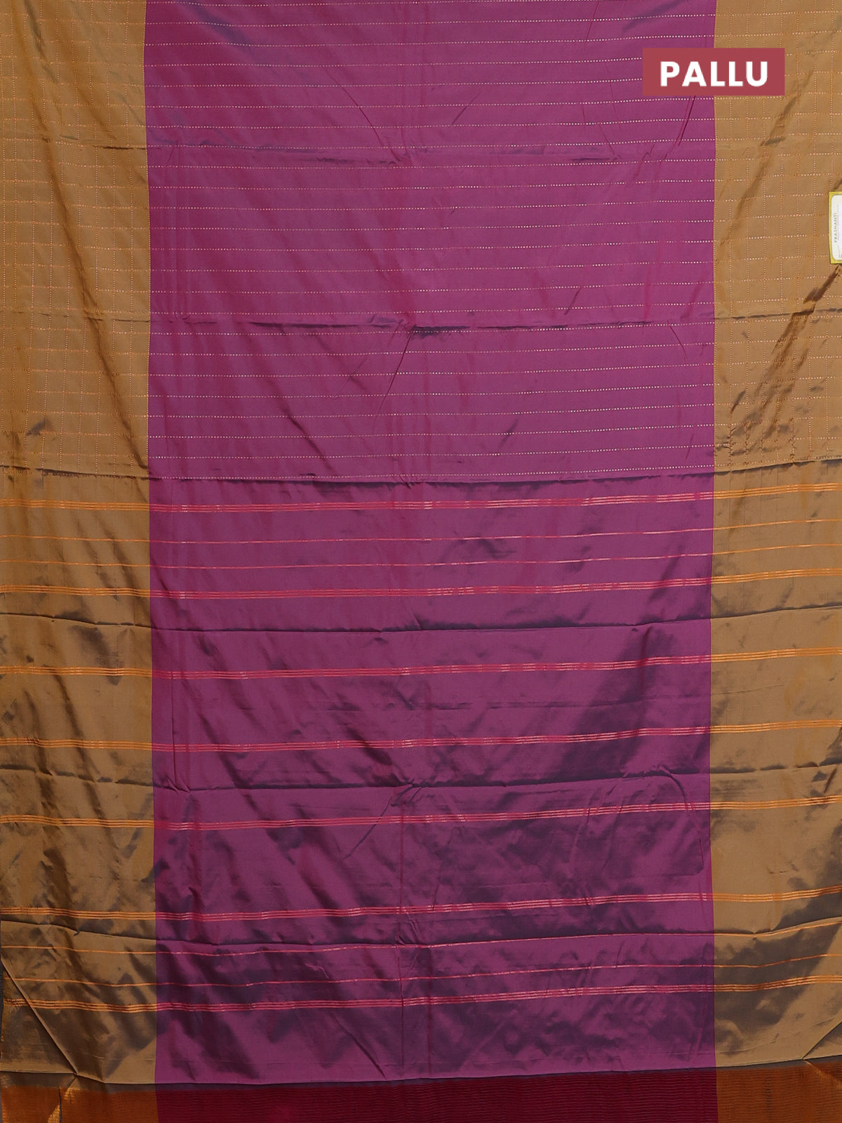 Arani semi silk saree dark purple and dark mustard with allover copper zari weaves and zari checked border