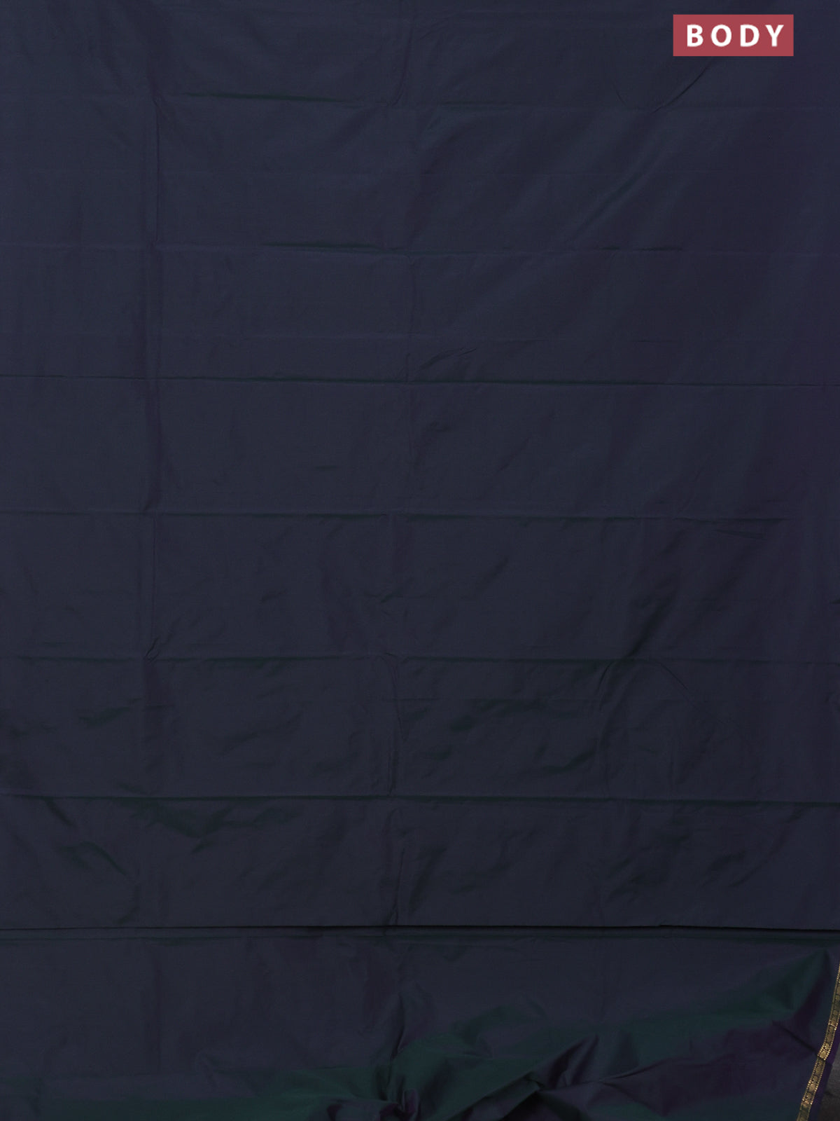 Arani semi silk saree dual shade of greenish blue with plain body and small zari woven border